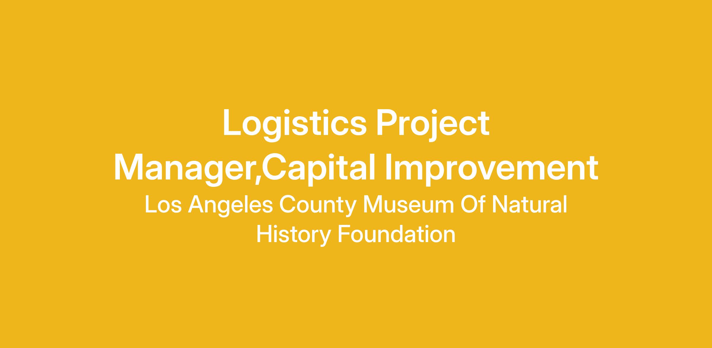 The NHMLAC is seeking a Logistics Project Manager, Capital Improvement for our Finance department. The Logistics Project Manager, Capital Improvement will serve as the central point of contact for all logistical aspects of the La Brea Tar Pits Collections & Equipment Move.