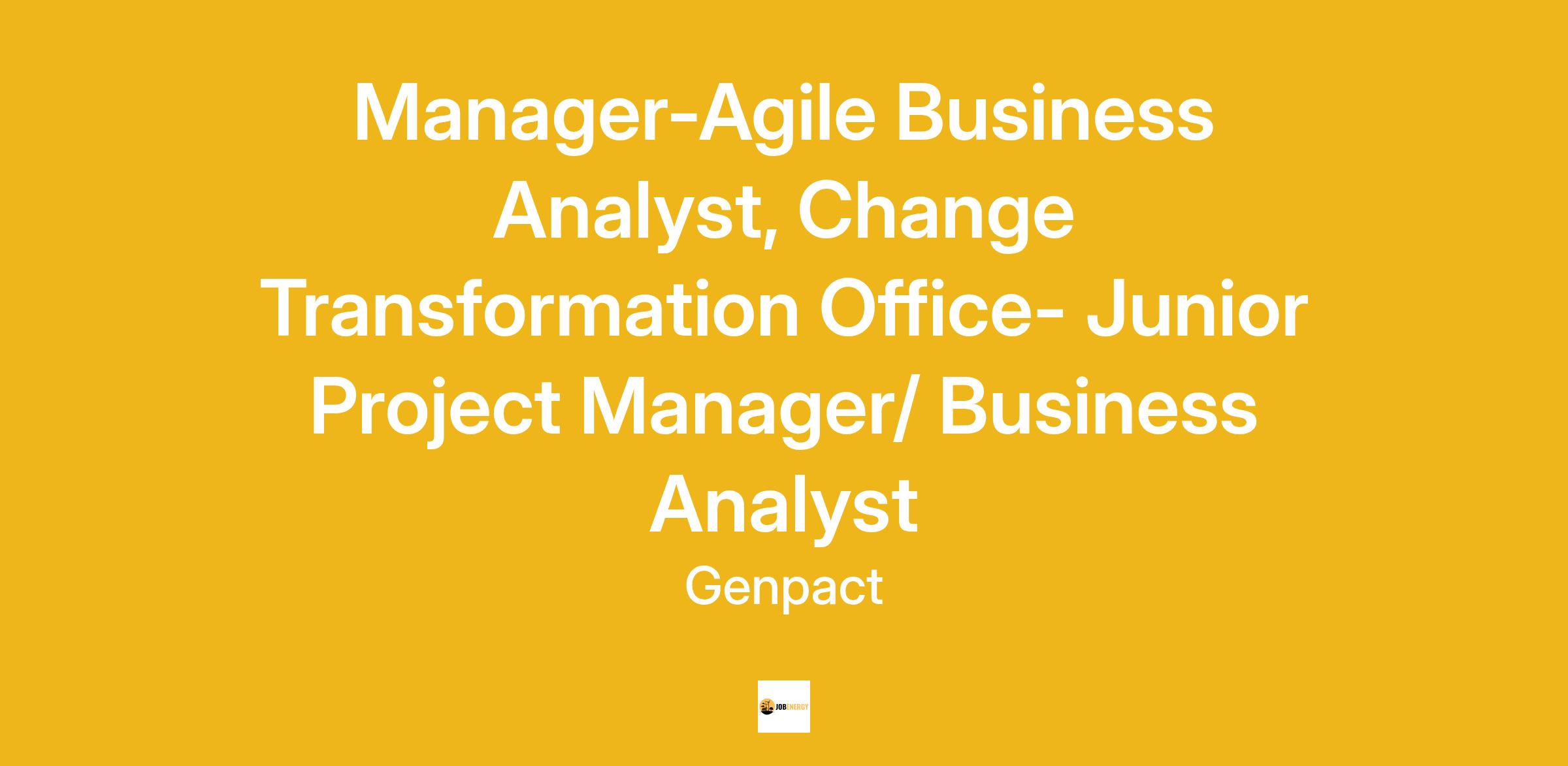 Inviting applications for the role of Manager-Agile Business Analyst, Change Transformation Office- Junior Project Manager/ Business Analyst!