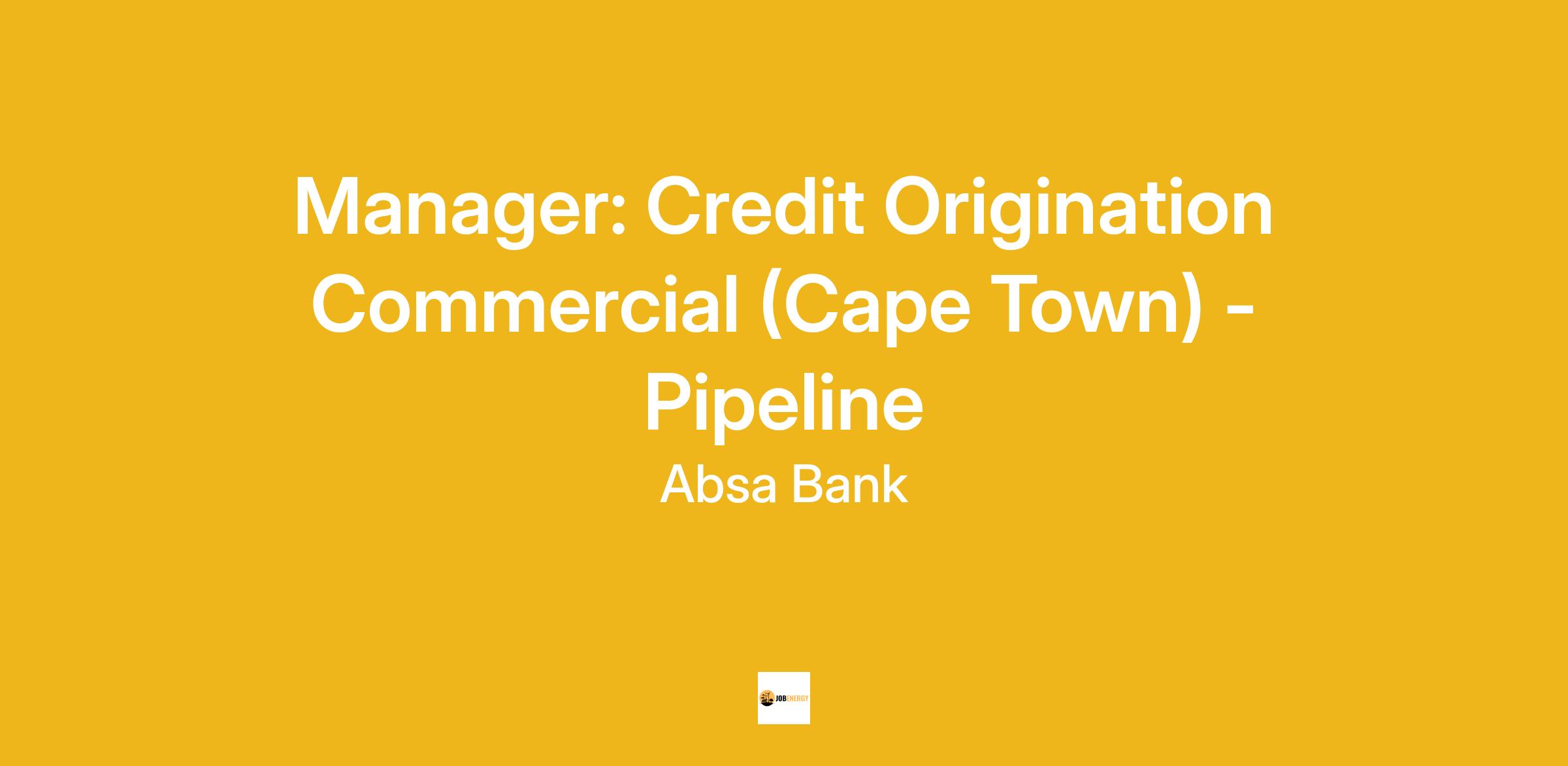 Manager: Credit Origination Commercial (Cape Town) - Pipeline