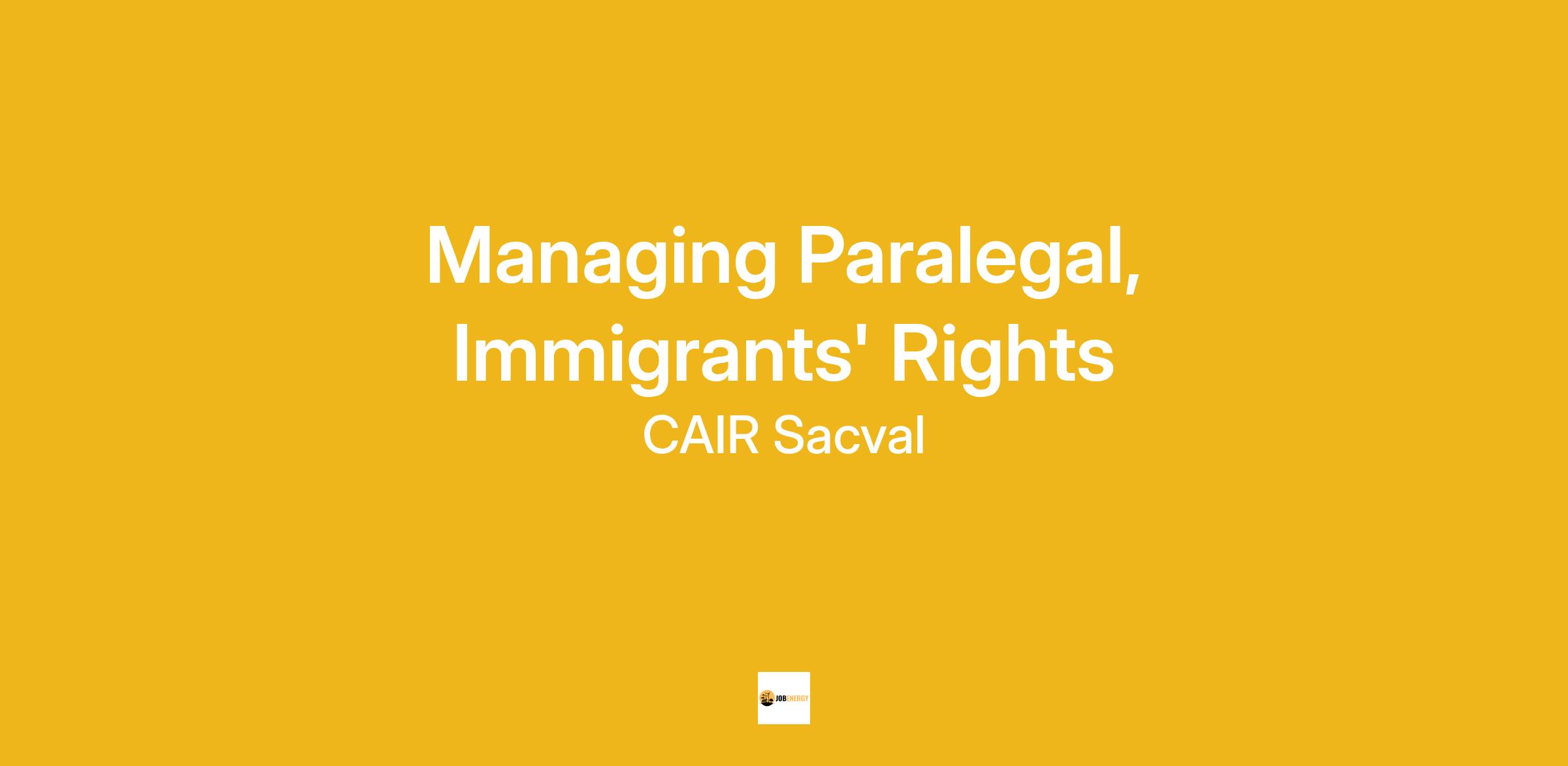 Managing Paralegal, Immigrants' Rights