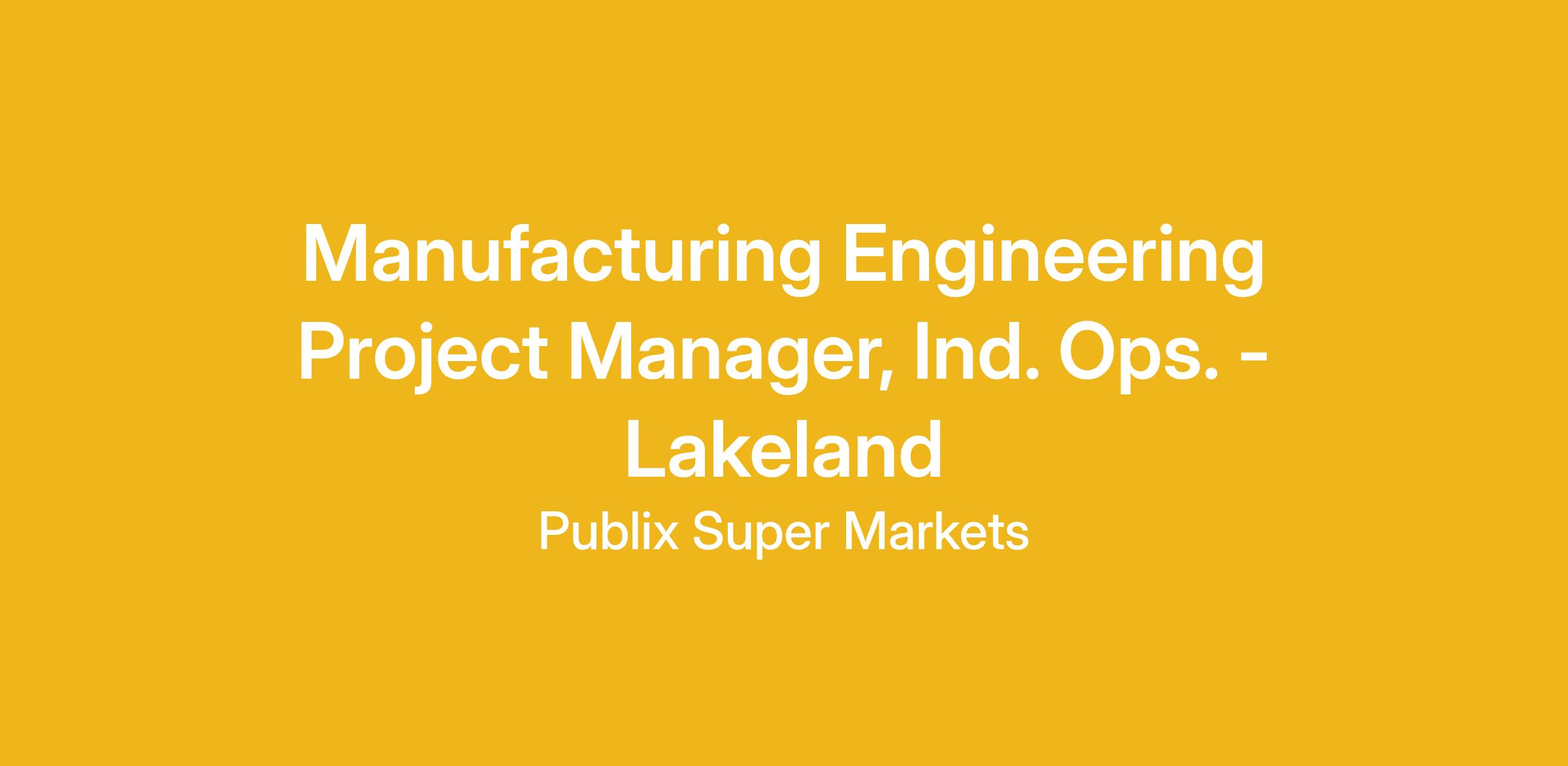 We are seeking an Engineering Project Manager to join our team! Publix Super Markets tops the list of privately-owned supermarkets in the US. We hold no long-term debt and continue to grow year after year. Publix and our associates excel in community involvement, volunteerism, and environmental sustainability. Our collective commitment has contributed to our success in being a great place to work and shop.