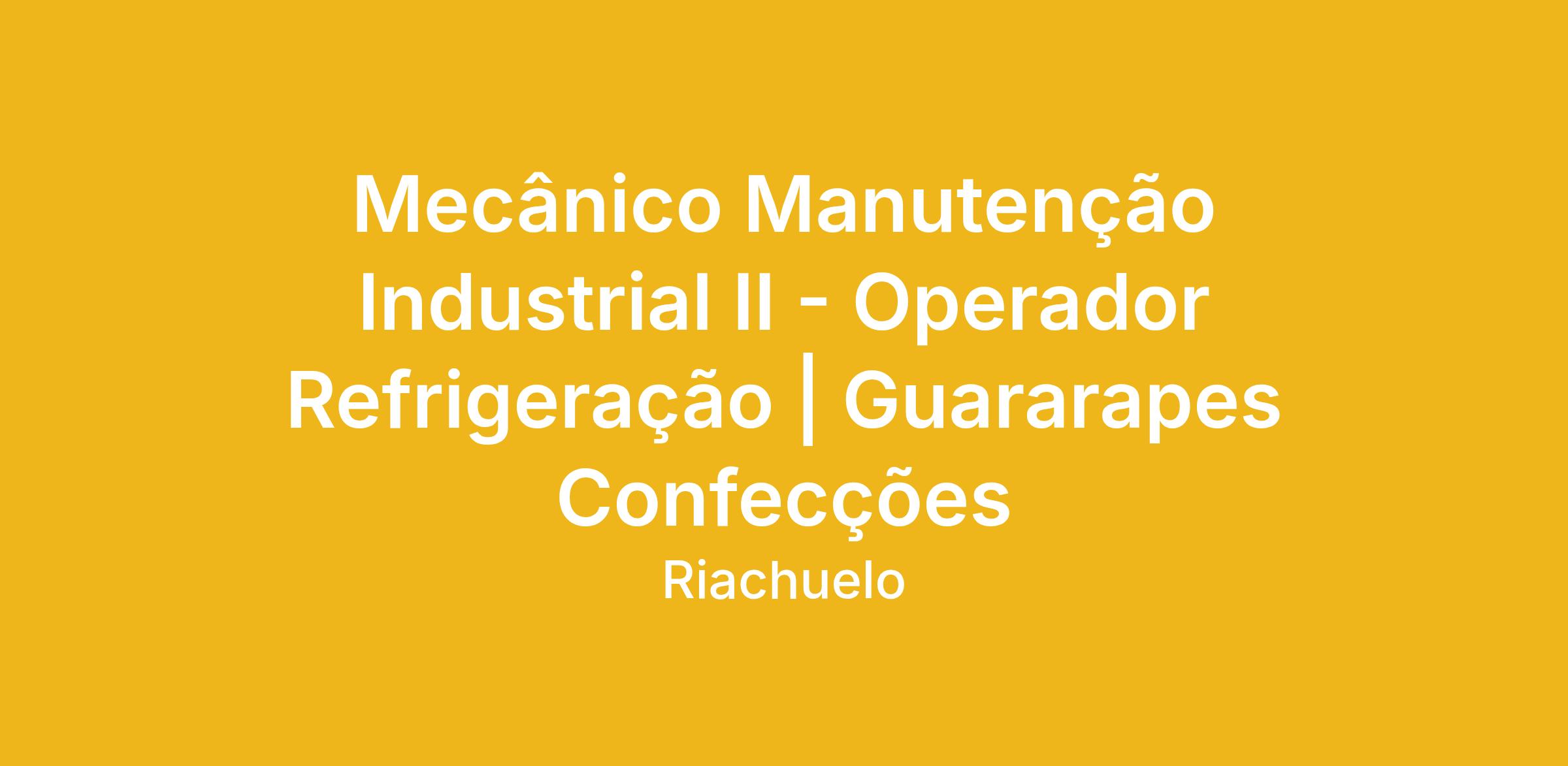 Nosso time de Fábrica Guararapes está em busca de um Mecânico de Máquina Industrial II para compor a equipe!