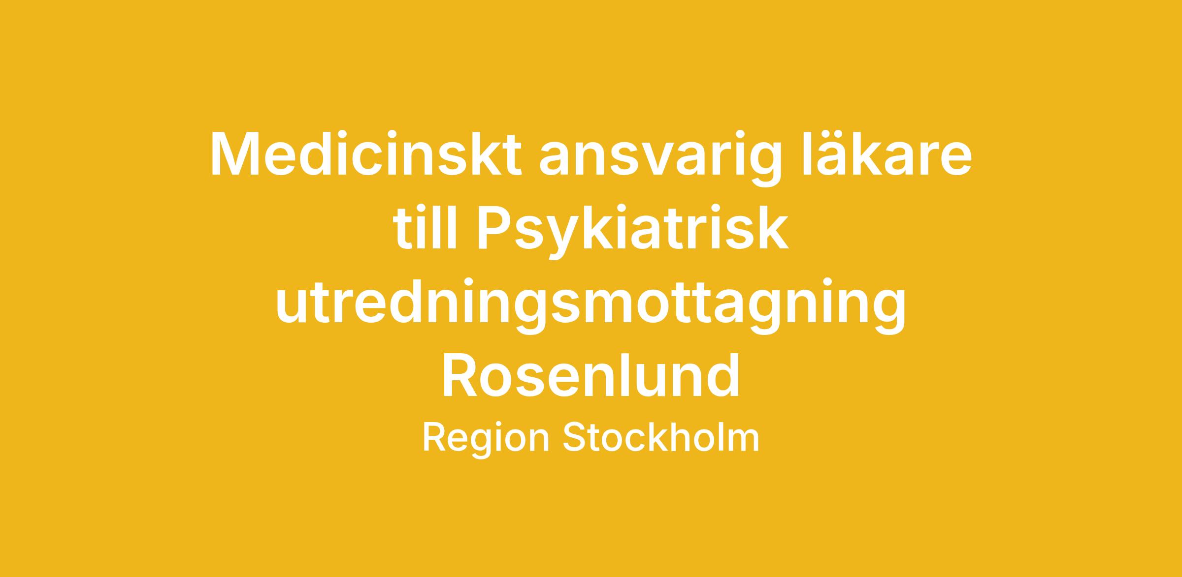 Vi söker en läkarchef med medicinskt ansvar (Medicinskt ansvarig läkare – MAL) till Psykiatriskt utredningsmottagning Rosenlund.