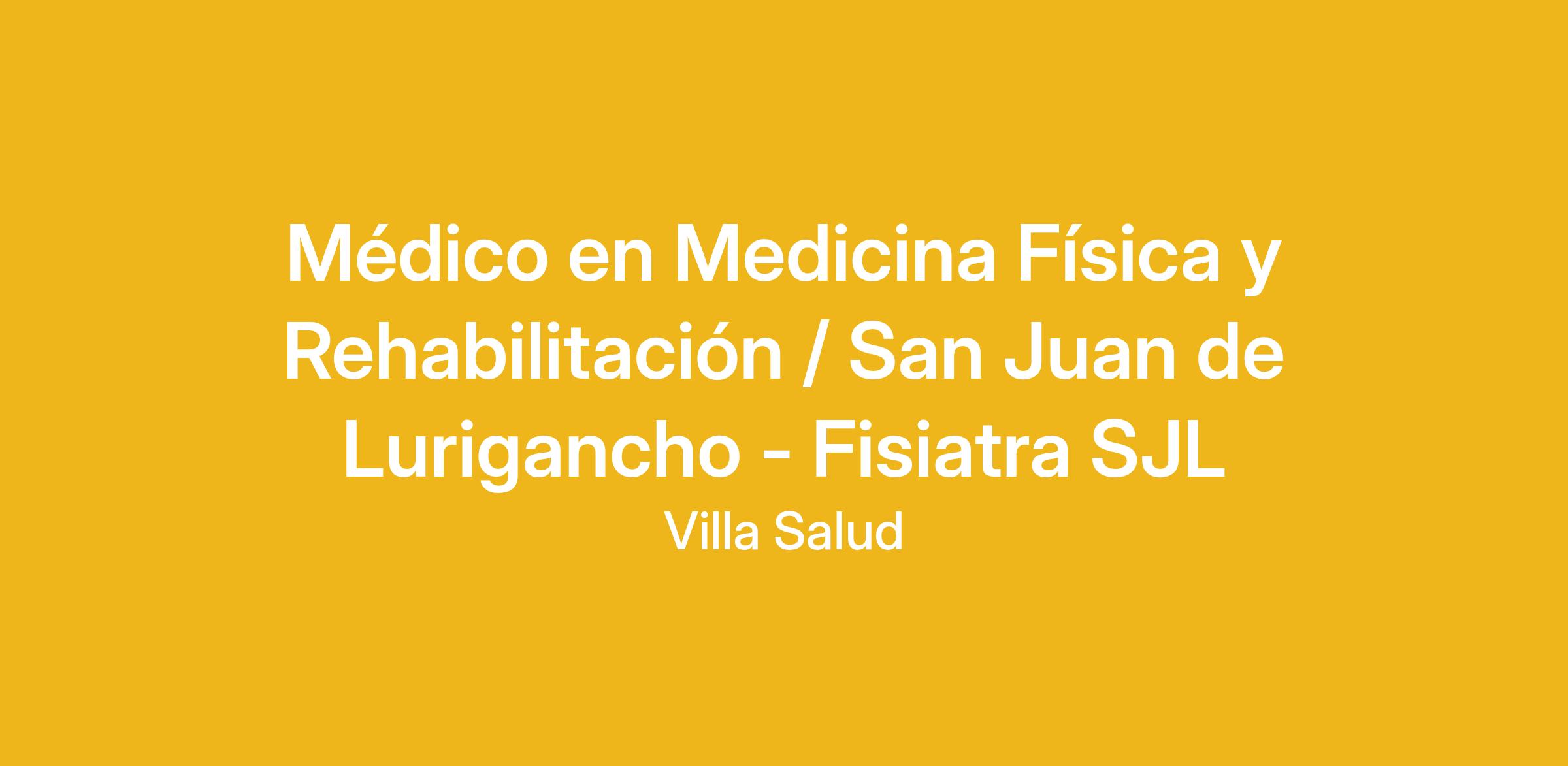 Somos Villa Salud, una institución con más de 13 años de experiencia en el sector salud, y nos encontramos en la búsqueda de UN (01) MÉDICO EN MEDICINA FÍSICA Y REHABILITACIÓN para nuestra sede de SAN JUAN DE LURIGANCHO: