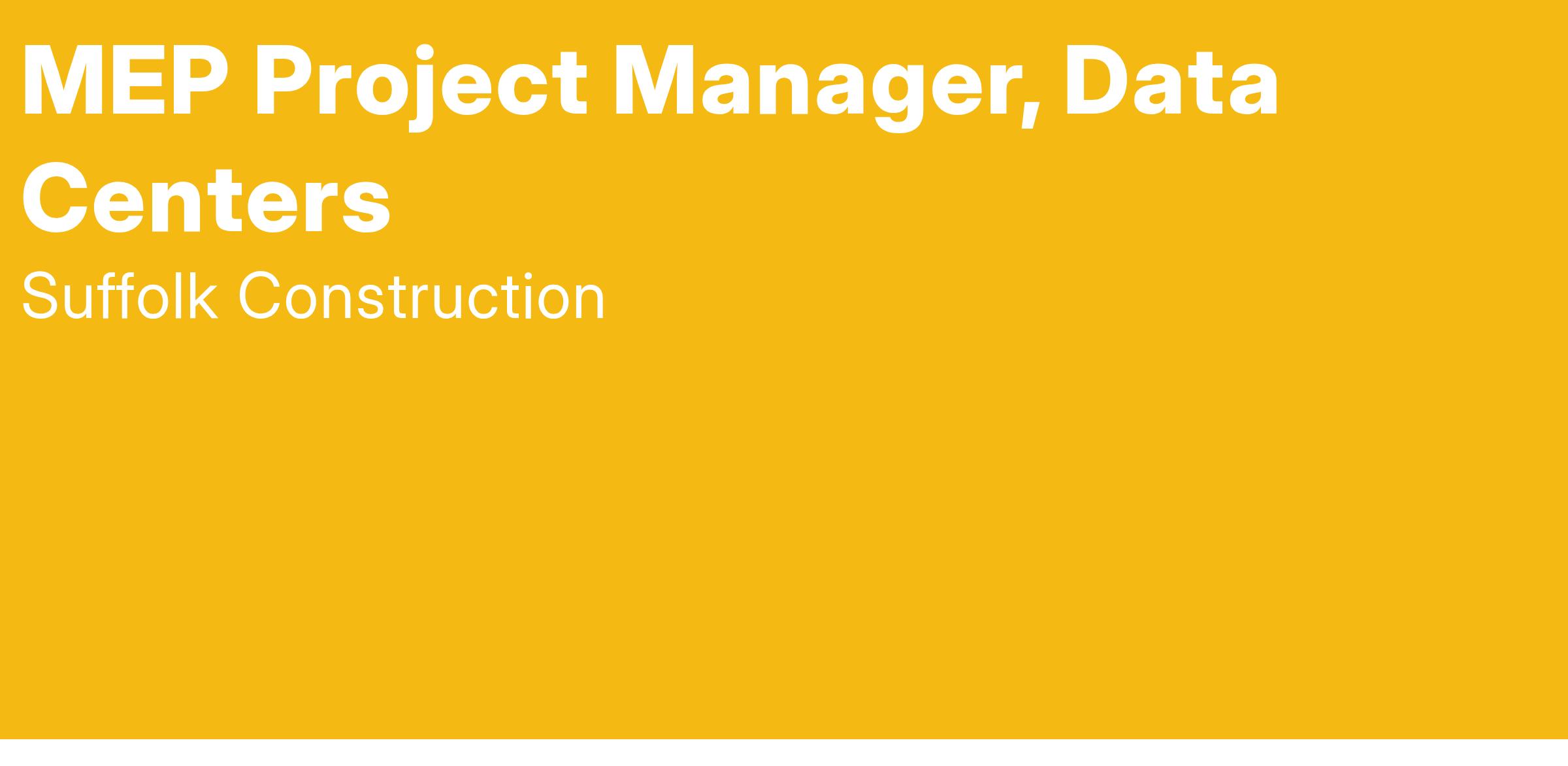 MEP Project Manager, Data Centers