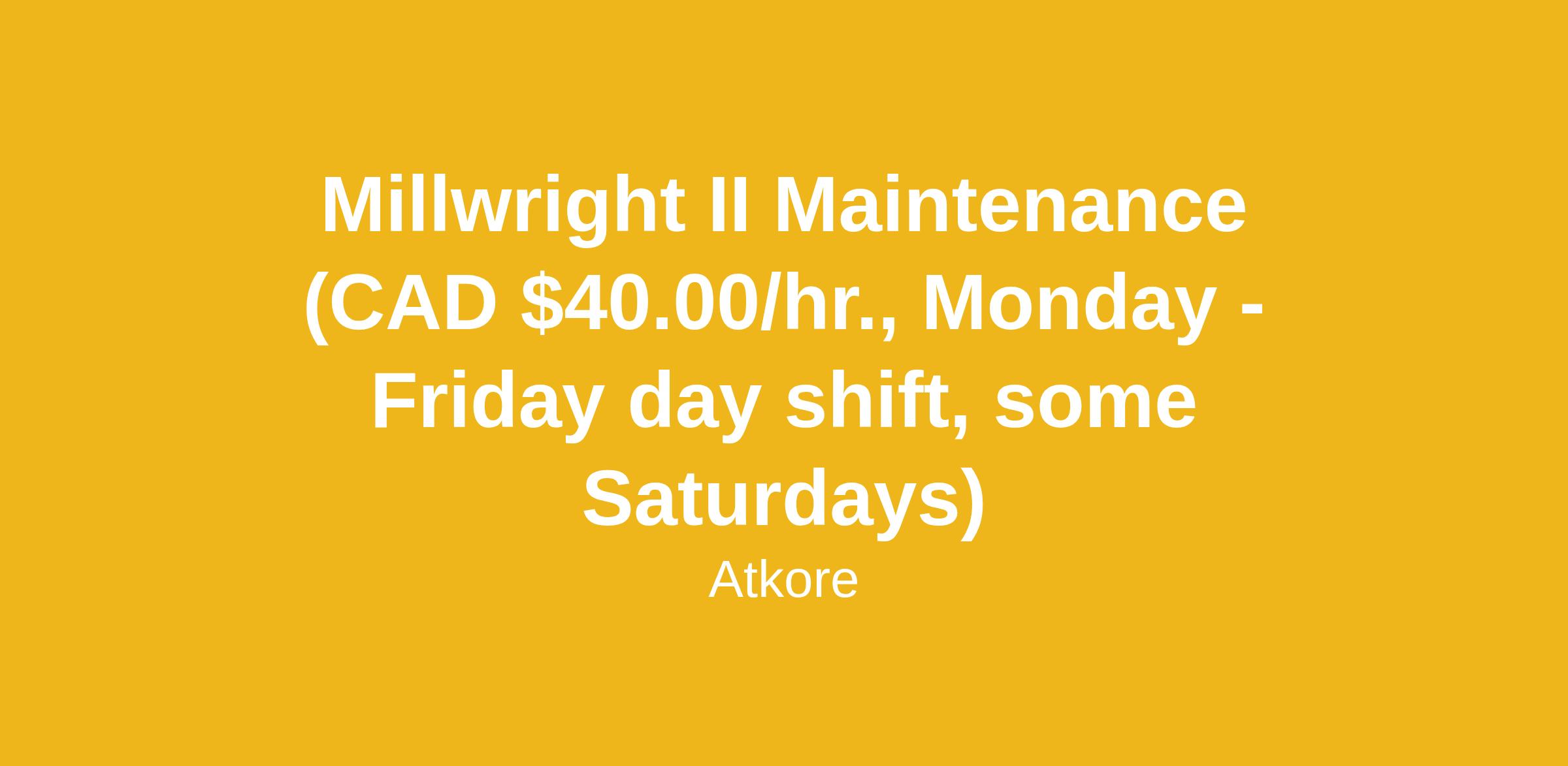 Millwright II Maintenance (CAD $40.00/hr., Monday -Friday day shift, some Saturdays)