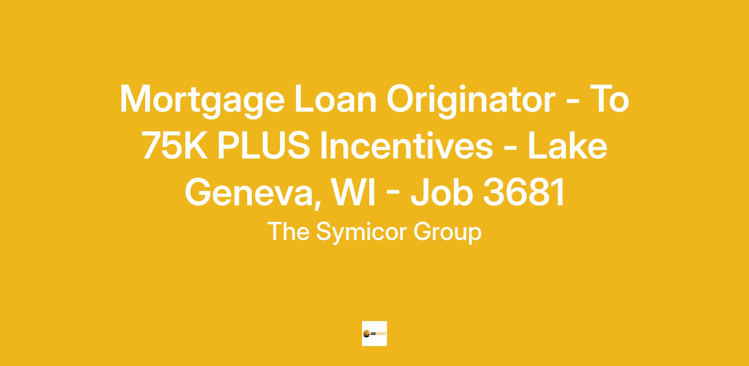 Mortgage Loan Originator – To $75K PLUS Incentives – Lake Geneva, WI – Job # 3681