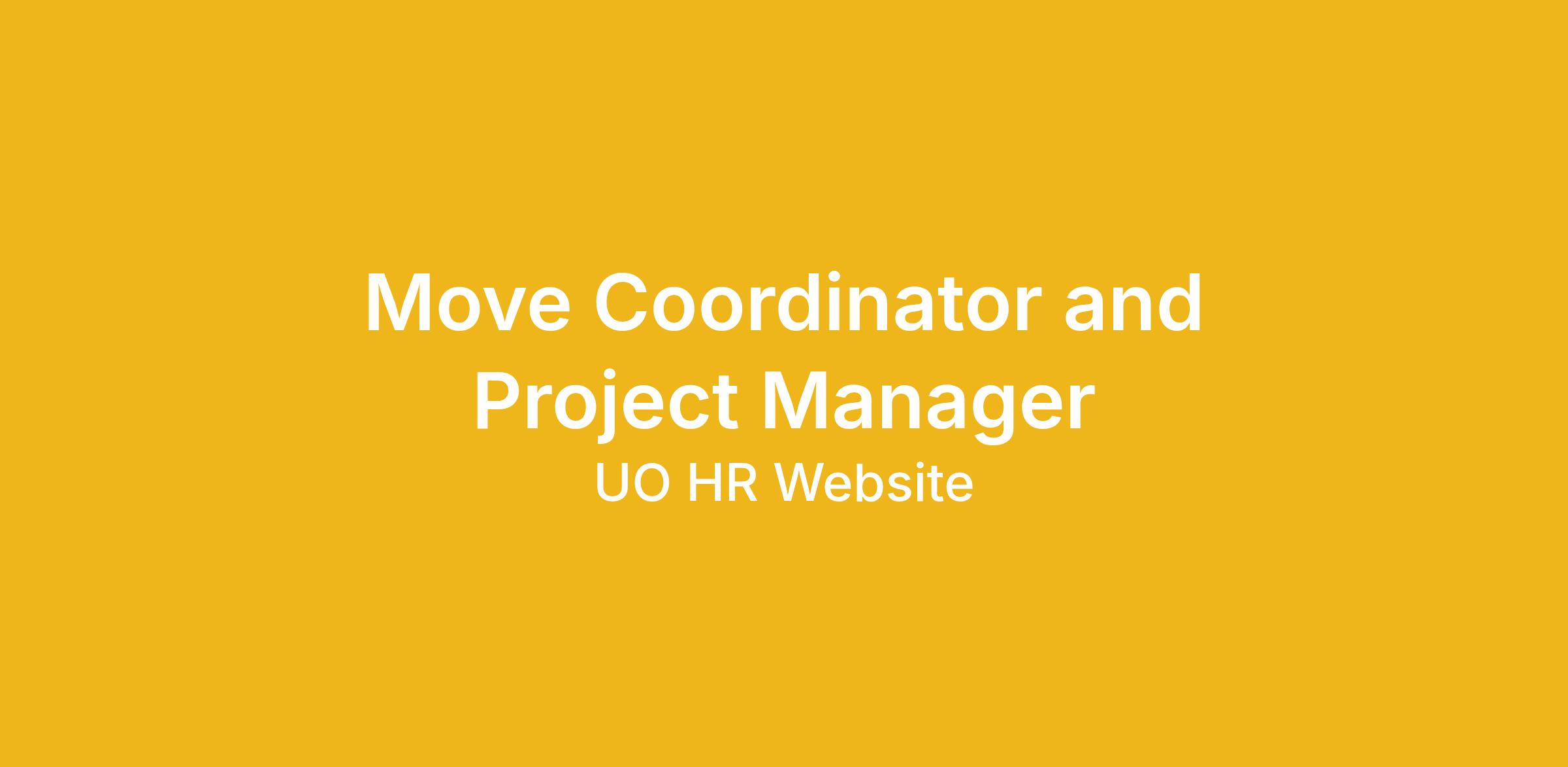The Move Coordinator and Project Manager makes decisions daily involving schedules, methods, materials, contract performance, and the quality of work that affect successful relocation and project completion. They may also include setting priorities, assessing customer needs and responding to those needs. The Move Coordinator and Project Manager works closely with Design and Construction Project Managers, multiple contractors, Owner’s Representatives, University of Oregon campus clients and constituents, and local moving companies and Facilities support staff while working on relocation and construction projects. This position works as a member of a team while frequently performing tasks independently.