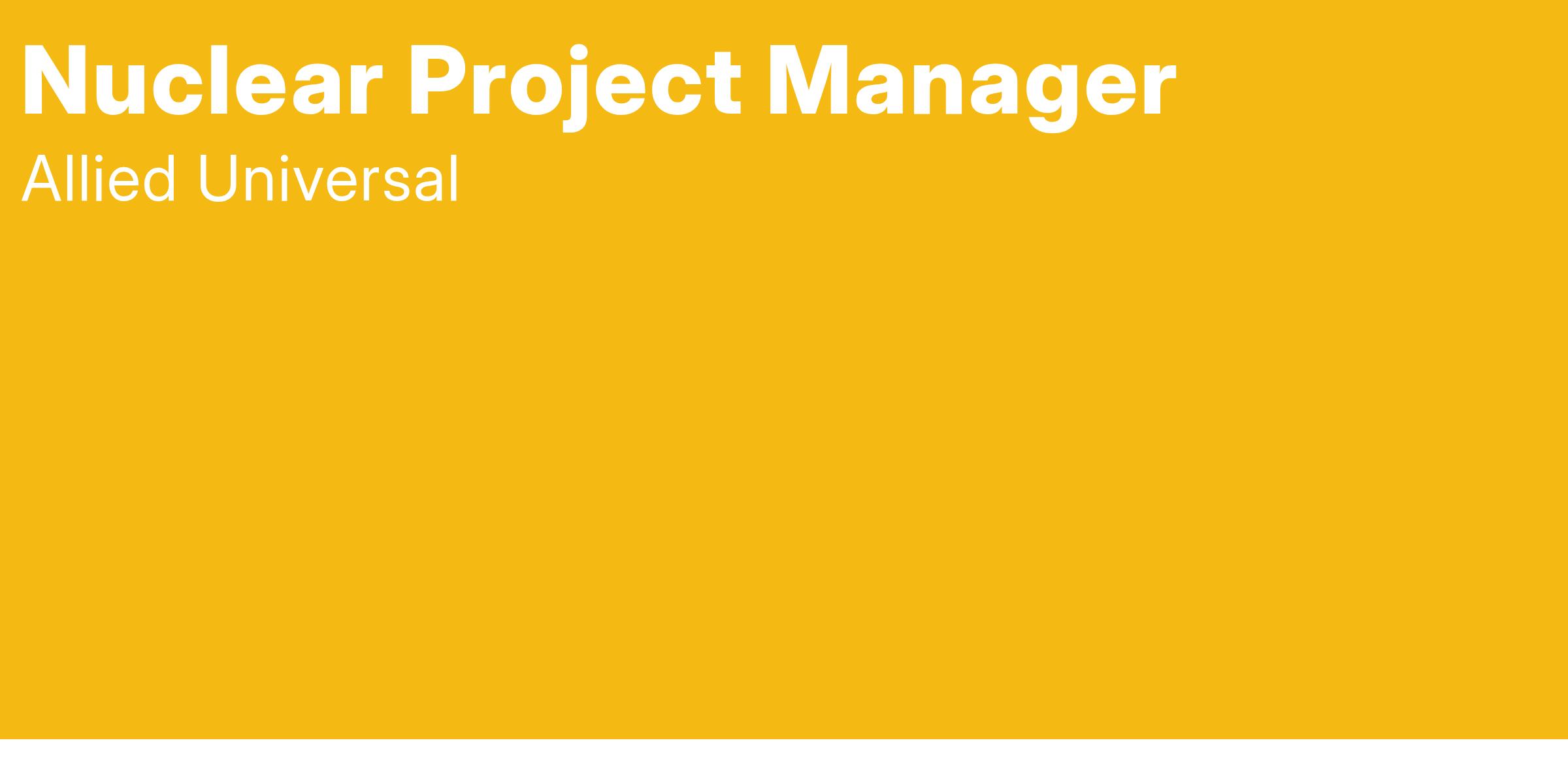The Nuclear Project Manager is responsible for administering the security contract and ensuring compliance with regulatory and contractual requirements. This position is also responsible for providing management oversight and driving operational accountability through effective change management and leadership development processes. This position is the primary point of contact for human relations functions involving AUS RSS employees. To support and ensure success in this role, we provide a comprehensive, week-long management onboarding course designed to provide best practices, tools and guidance.