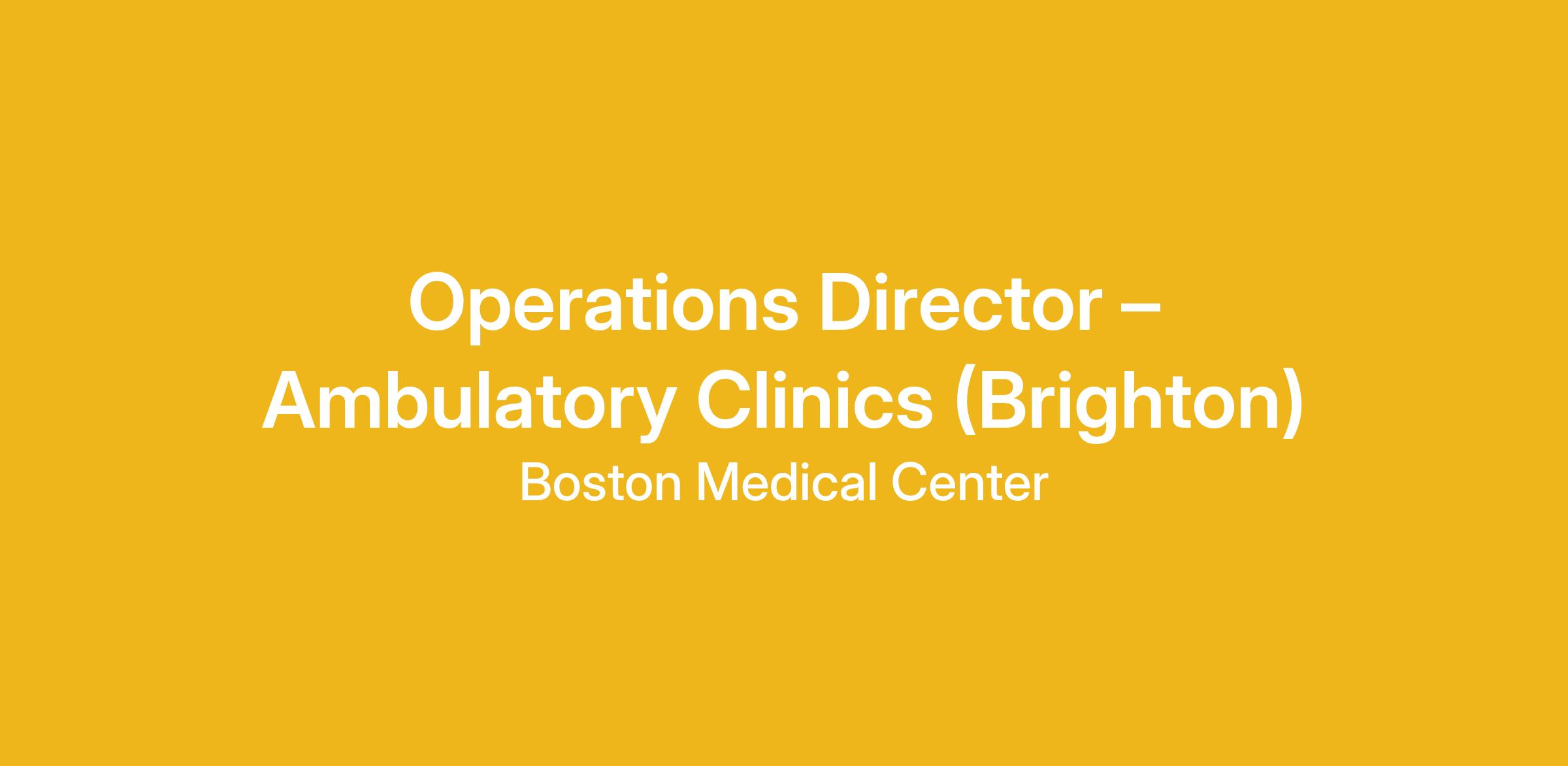 The Operations Director will collaborate with our BMC Ambulatory Central Team and play a leadership role in the establishment and roll out of ambulatory standard practices across our BMC South and BMC Brighton ambulatory clinics.