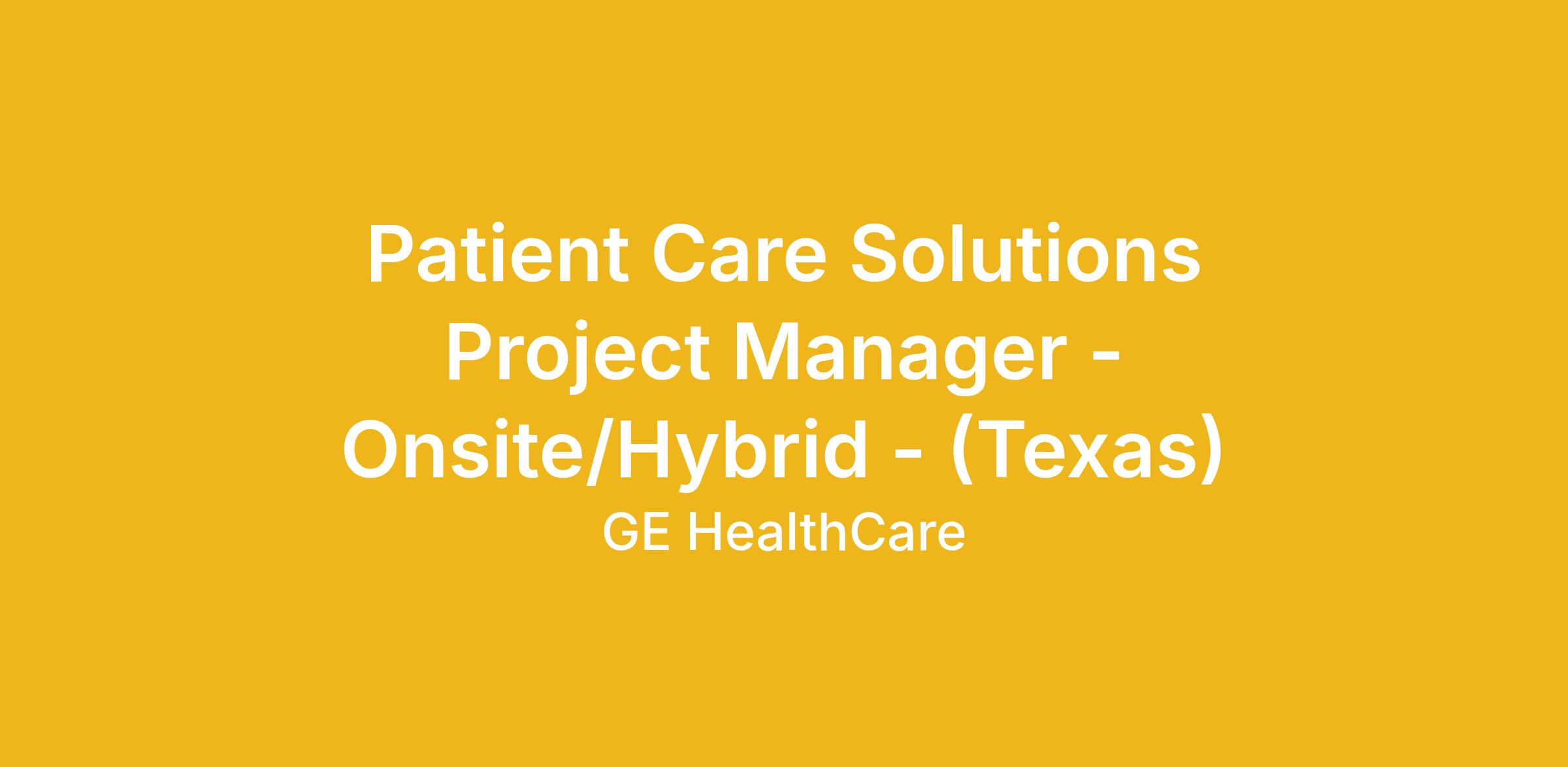 GE HealthCare has a wonderful opportunity to join our Patient Care Solutions Project Management team. You'll own the project management and implementation process for GEHC Patient Care Solutions products (Monitoring Solutions, Perioperative and Maternal Infant Care) including but not limited to sales order review, project planning and documentation, resource coordination, and issues resolution.