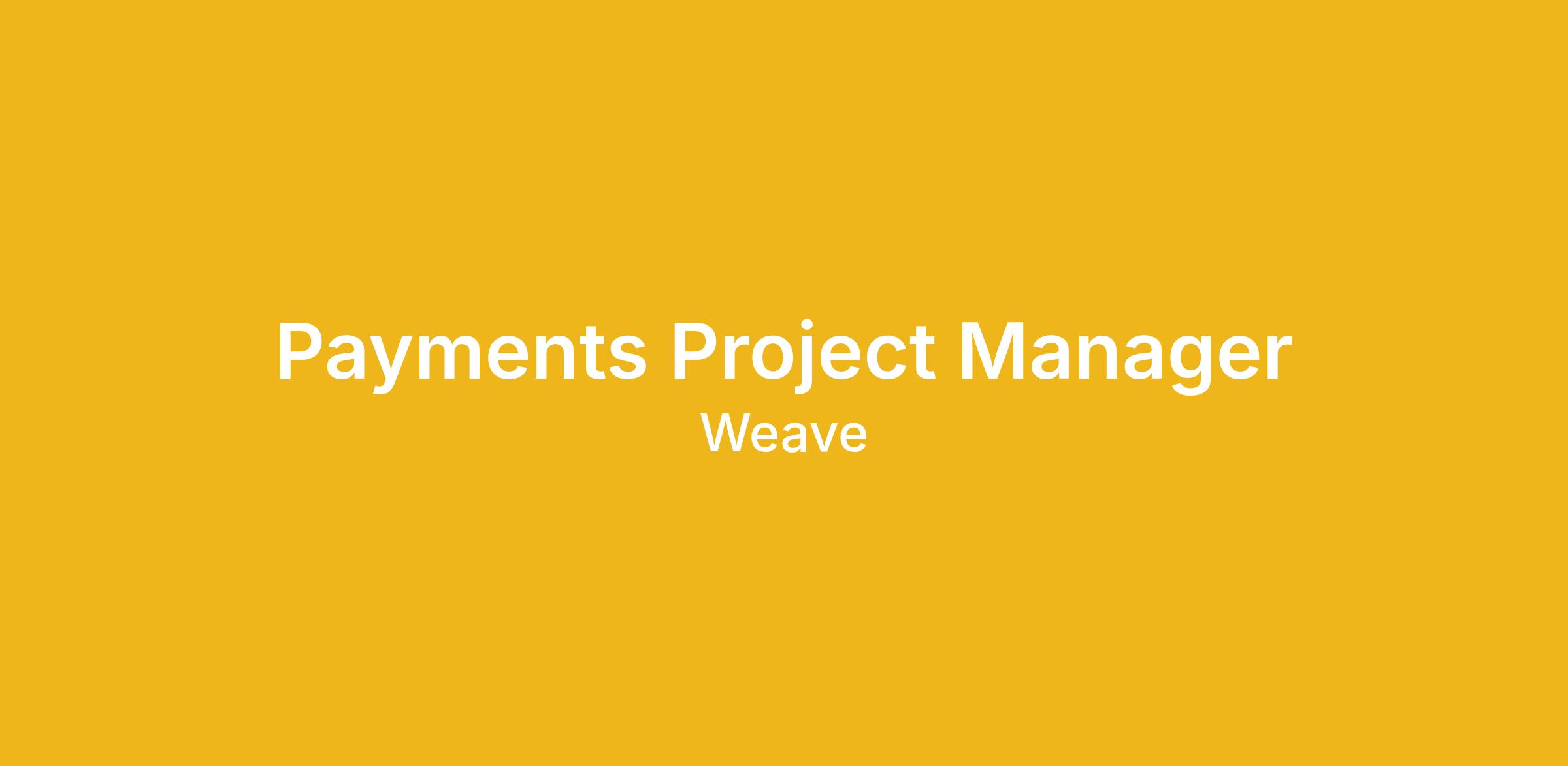 The Payments Project Manager is responsible for planning, executing, and delivering projects within Weave’s Payments organization. This role partners closely with Payments Product, Engineering, Risk, Compliance, Finance, Marketing, Sales and Operations to ensure payment-related initiatives are delivered reliably, securely, and in alignment with business and regulatory requirements. In addition, the role will require periodic executive-level engagement. The Project Manager focuses on tactical execution, operational rigor, and predictable delivery in a highly regulated, high-impact domain.