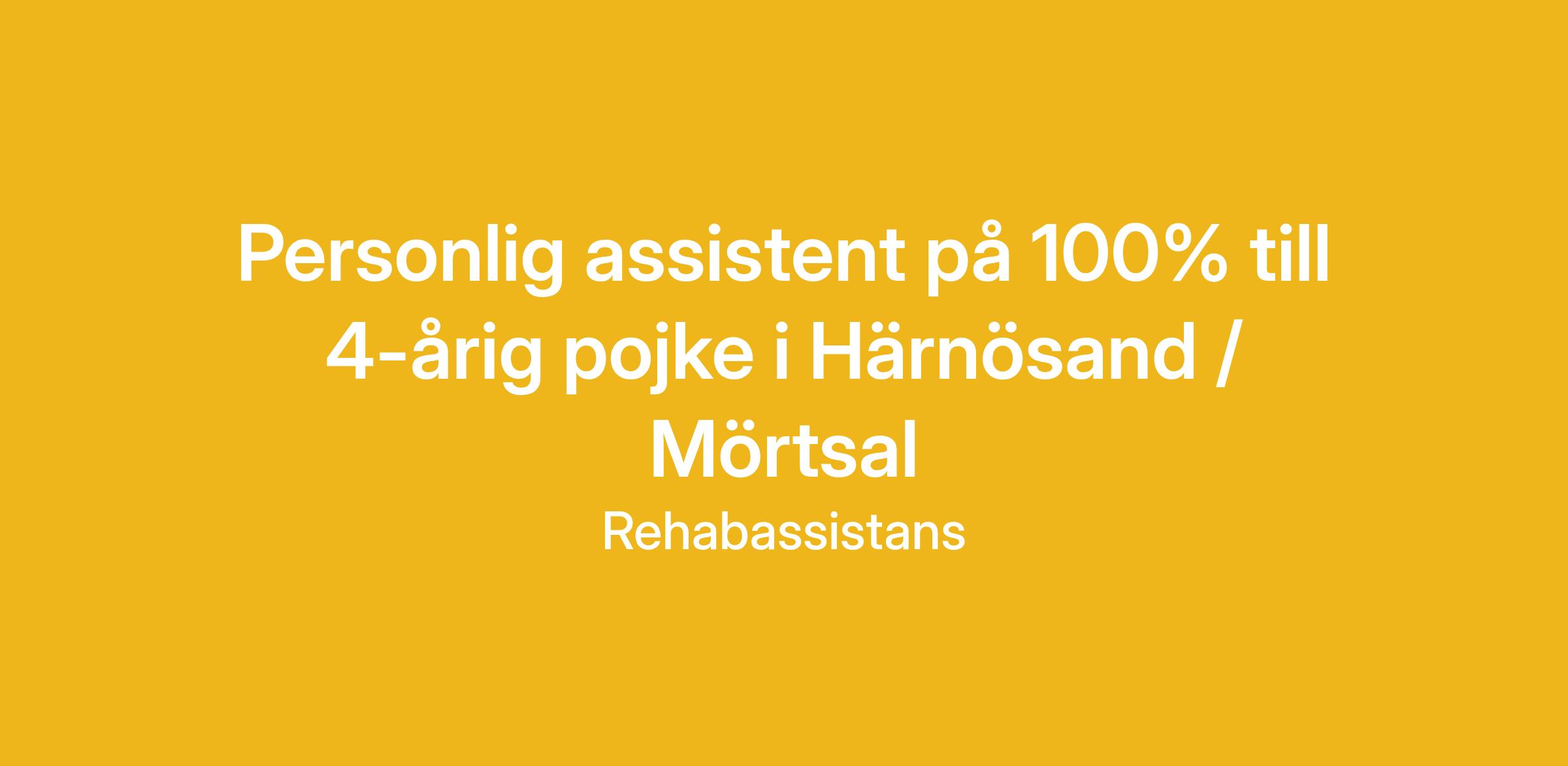 Vi på Rehabassistans söker dig som vill arbeta som personlig assistent. Vår kund bor varannan vecka i Härnösand och i Mörtsal. Vi erbjuder en tjänst på 100% och timvikariat vid behov. Arbetstiderna är förlagda till kl. 07.00-20.00 och du arbetar alltid tillsammans med en kollega.