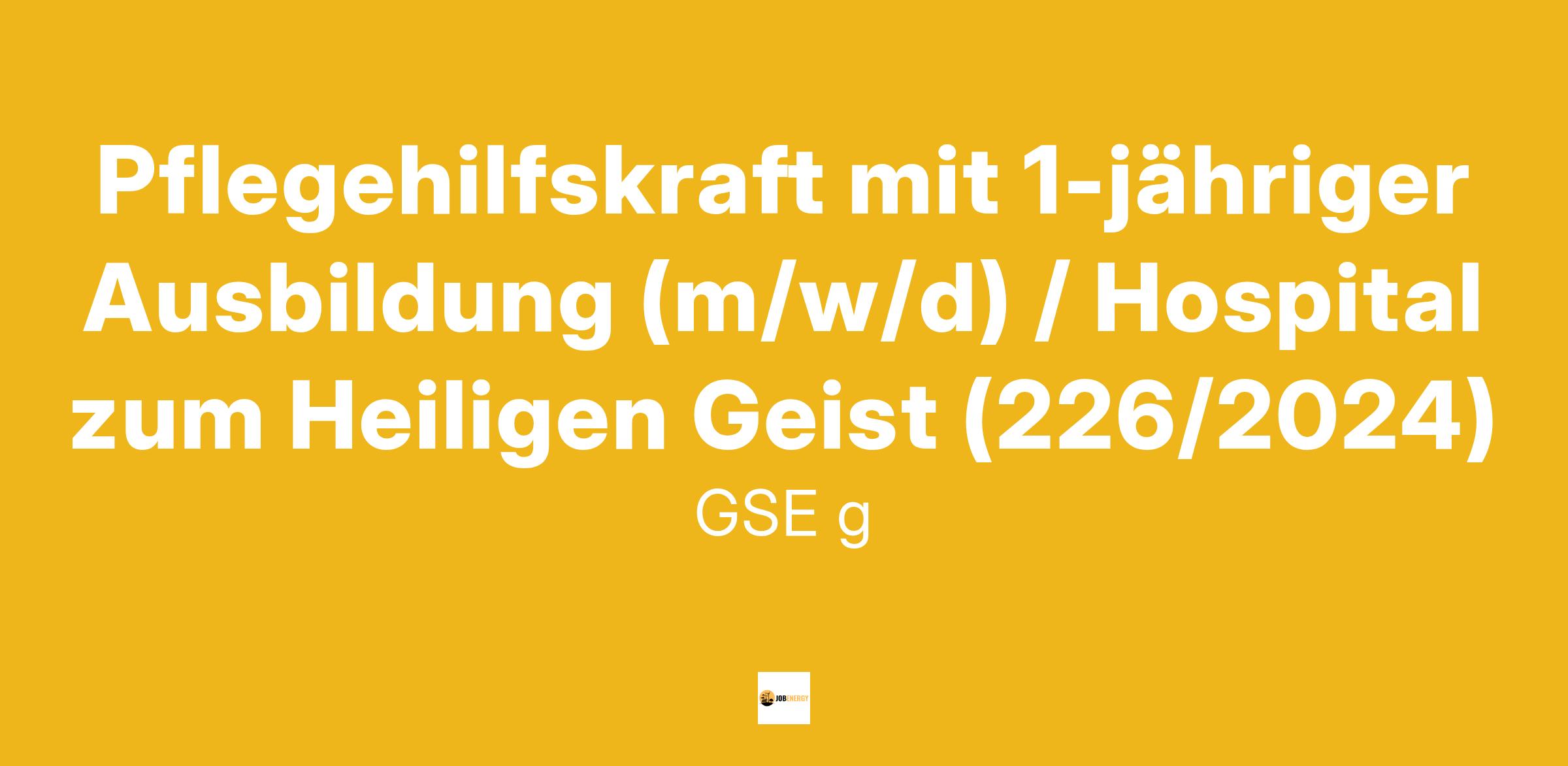 Pflegehilfskraft mit 1-jähriger Ausbildung (m/w/d) / Hospital zum Heiligen Geist (226/2024)