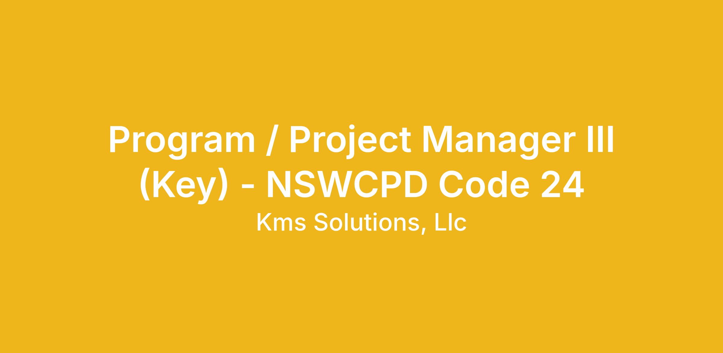 Program / Project Manager III (Key) - NSWCPD Code 24