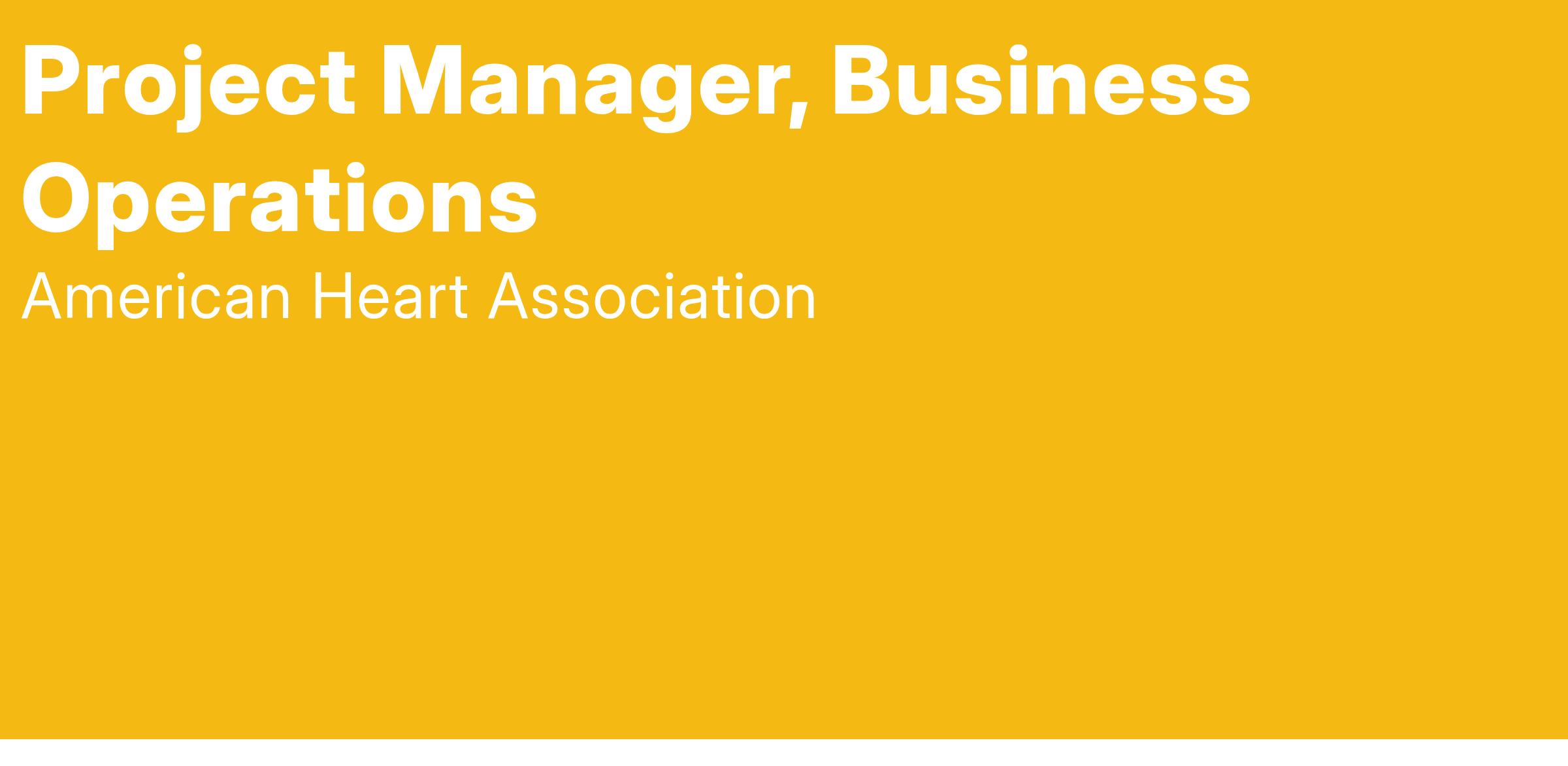 The American Heart Association is thrilled to have an outstanding opportunity for a Project Manager, Business Operations at our National Center office in Dallas, TX. This position can be home-based.
