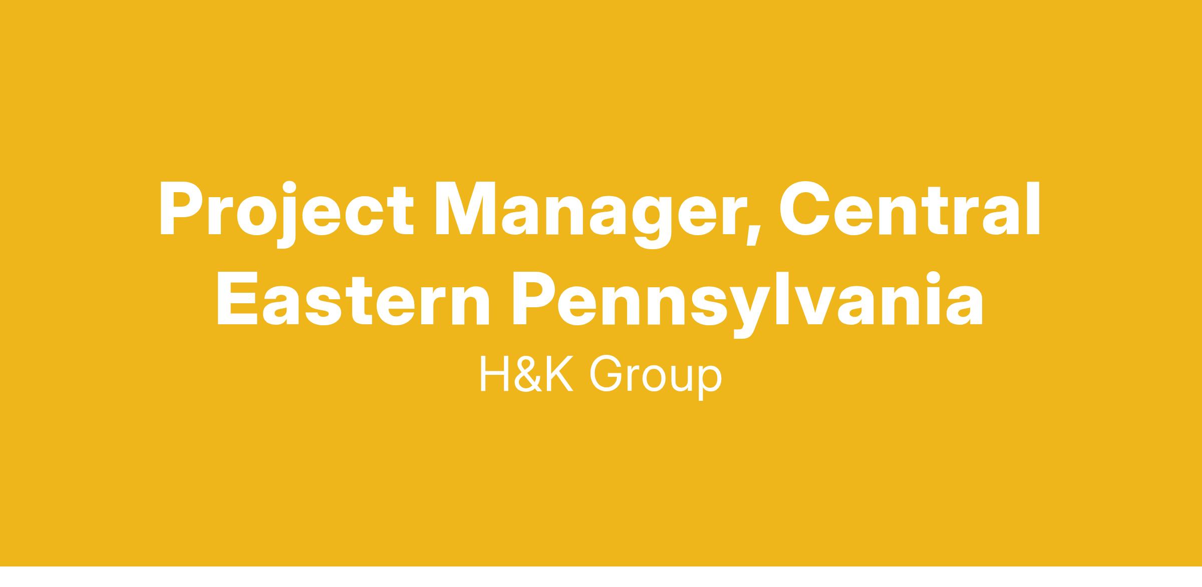 H&K Group, Inc., is looking for an experienced Project Manager to support public and private projects throughout central Eastern Pennsylvania! The Project Manager plans, directs, and coordinates project activities to ensure goals of project are accomplished within the prescribed time frame and funding parameters. The ideal candidate is detail oriented, a team player, and a creative problem solver.