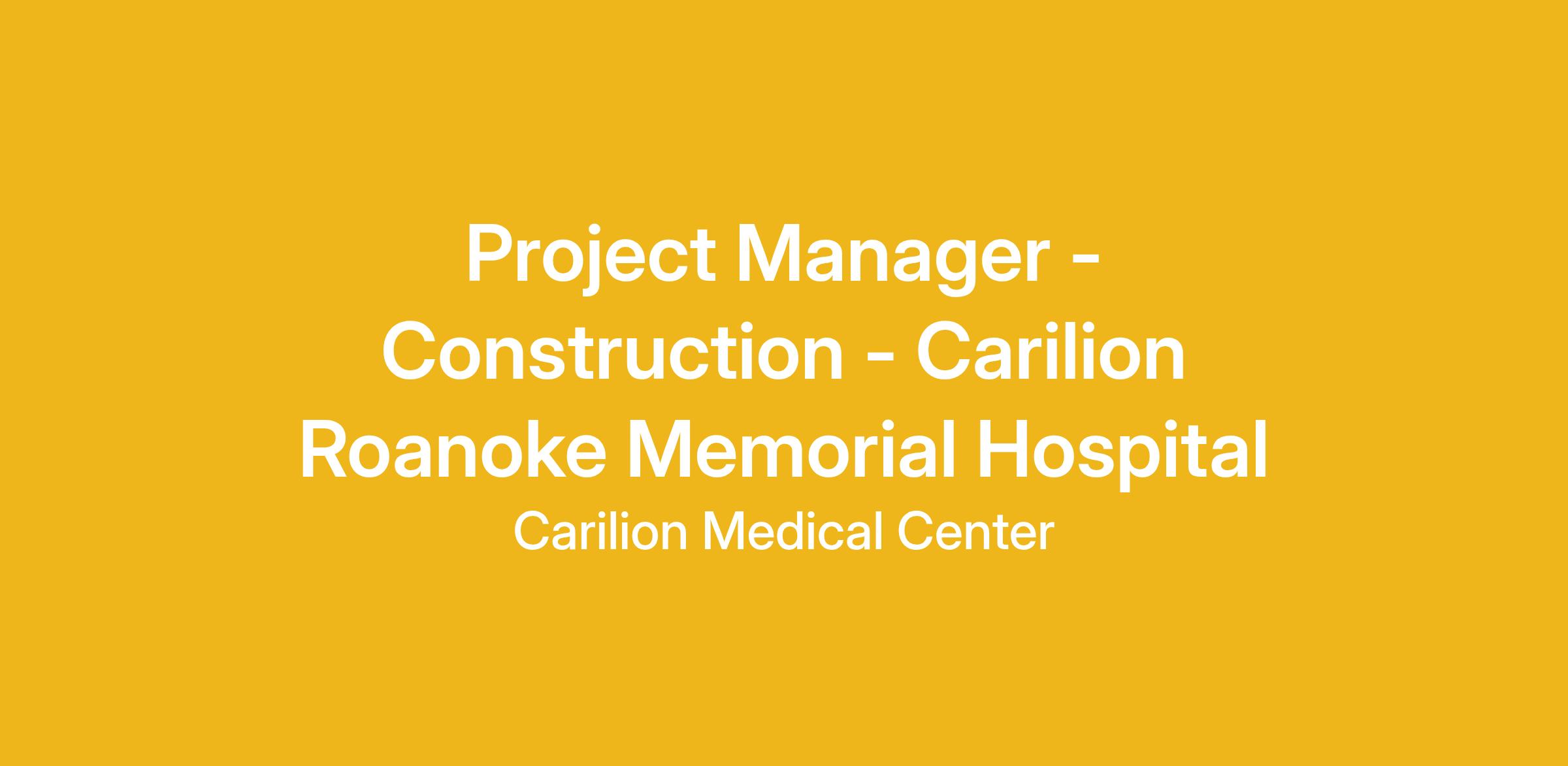 The Project Manager- Construction manages daily functions of construction projects to ensure they are timely and cost effective in accordance with Carilion vision and mission needs and in compliance with applicable codes and regulations.