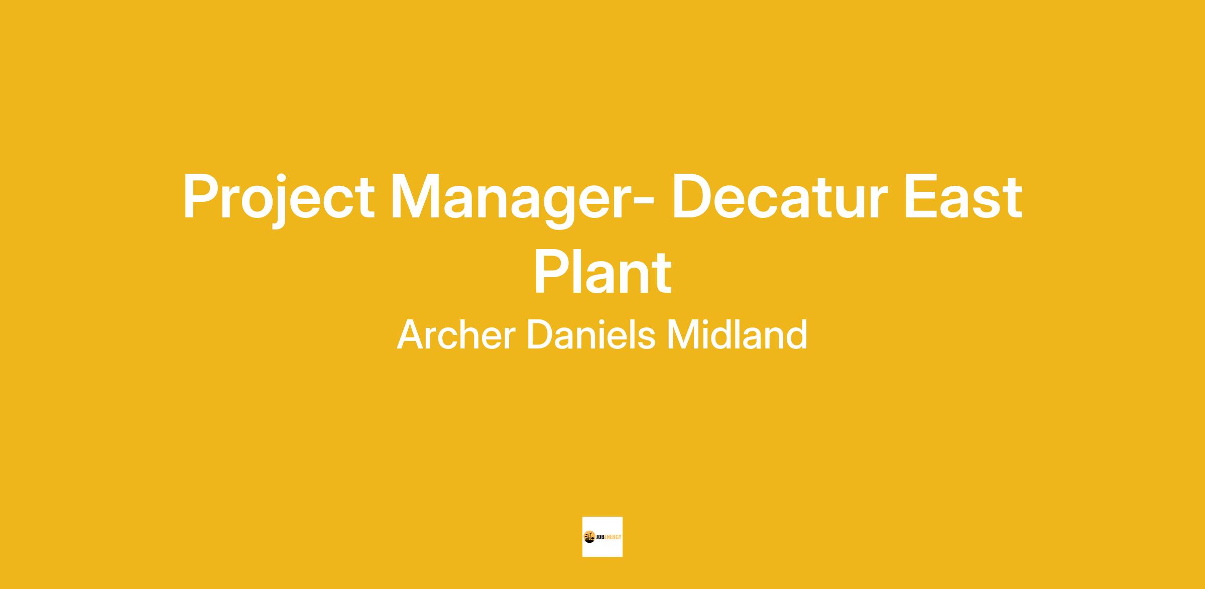 Project Manager- Decatur IL East PlantJob Description:Decatur East Plant Project Manager will oversee the design and implementation of capital projects as required to meet the needs of the business. This includes identifying/evaluating project opportunities, requesting authorization for projects, as well as managing a broad range of responsibilities for complex capital projects thru the project phases of Identification, Definition, Design, Execution, and Evaluation. The successful candidate will work directly with clients to ensure deliverables fall within the applicable scope and budget. They will coordinate with all stakeholders to ensure all aspects of each project are compatible and will make necessary recommendations to ensure project health and completeness. They have responsibility to continuously improve our plant’s project engineering processes.