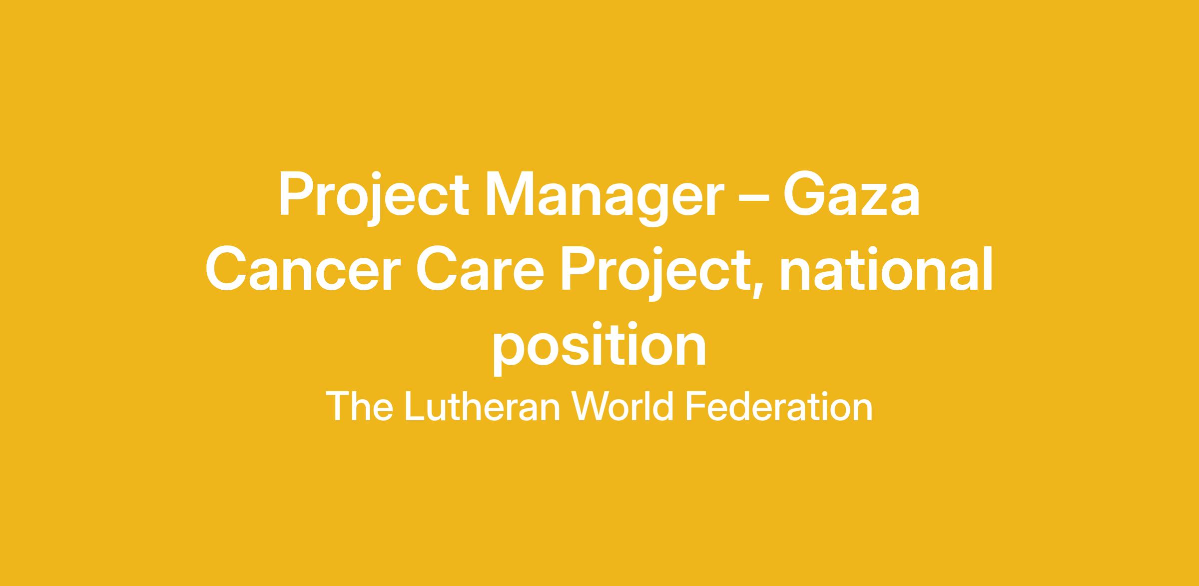 The Lutheran World Federation (LWF) – Jerusalem Program is seeking a proactive and innovative Project Manager to oversee the implementation of the Gaza Cancer Care Capacity Project. The position will play a critical role in promoting the right to health, particularly through advancing access to specialized cancer care for the population of Gaza.