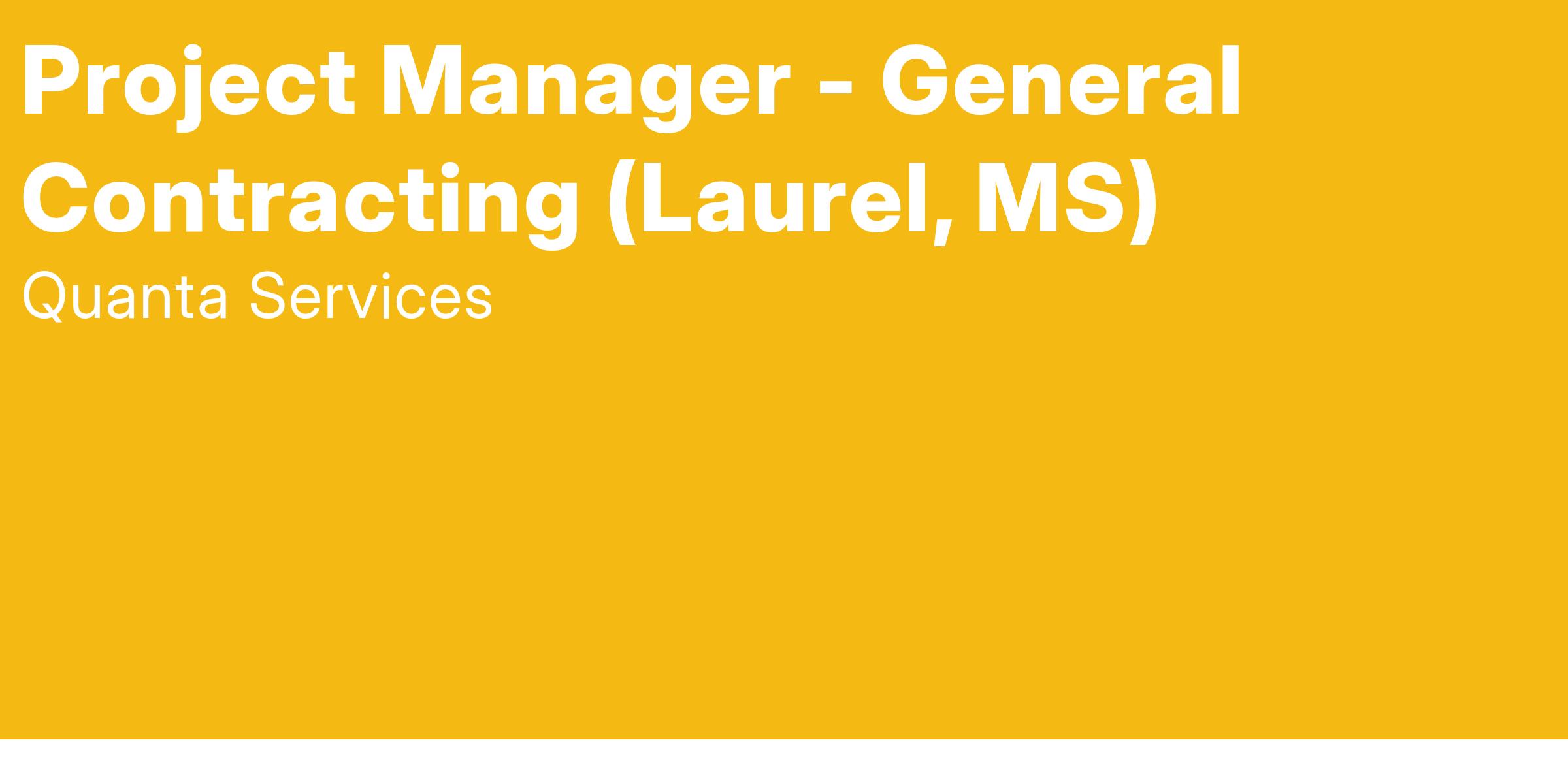 IRBY Construction Company, a Quanta Services Company, is looking for experienced Project Managers with a strong General Contracting background to join our team in Laurel, MS.