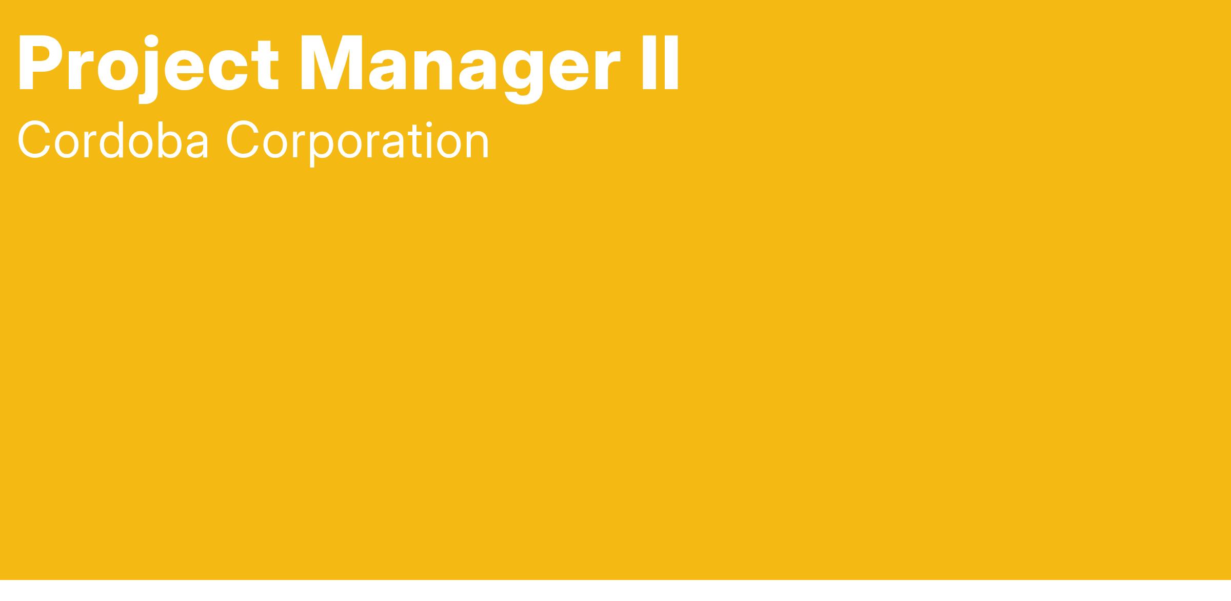 Cordoba Corporation provides equal employment opportunities, promoting diversity and inclusion. We welcome applicants regardless of race, color, religion, sex, national origin, age, disability, or genetics.