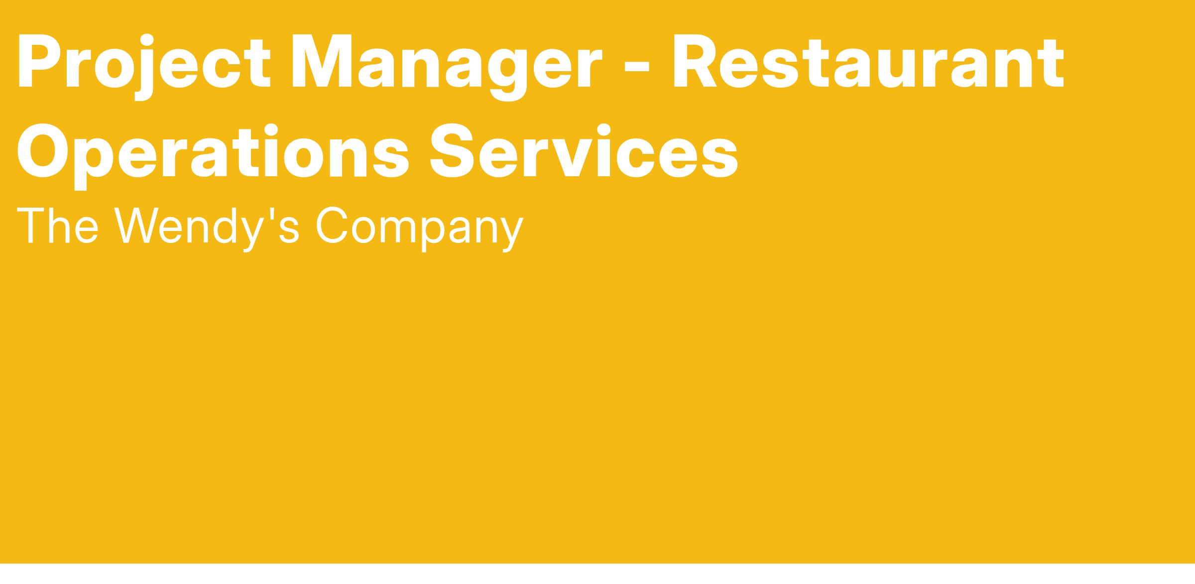 The Project Manager is responsible for discovery, testing, evaluating, implementing, integrating and managing menu and non-menu initiatives into the Wendy’s system.