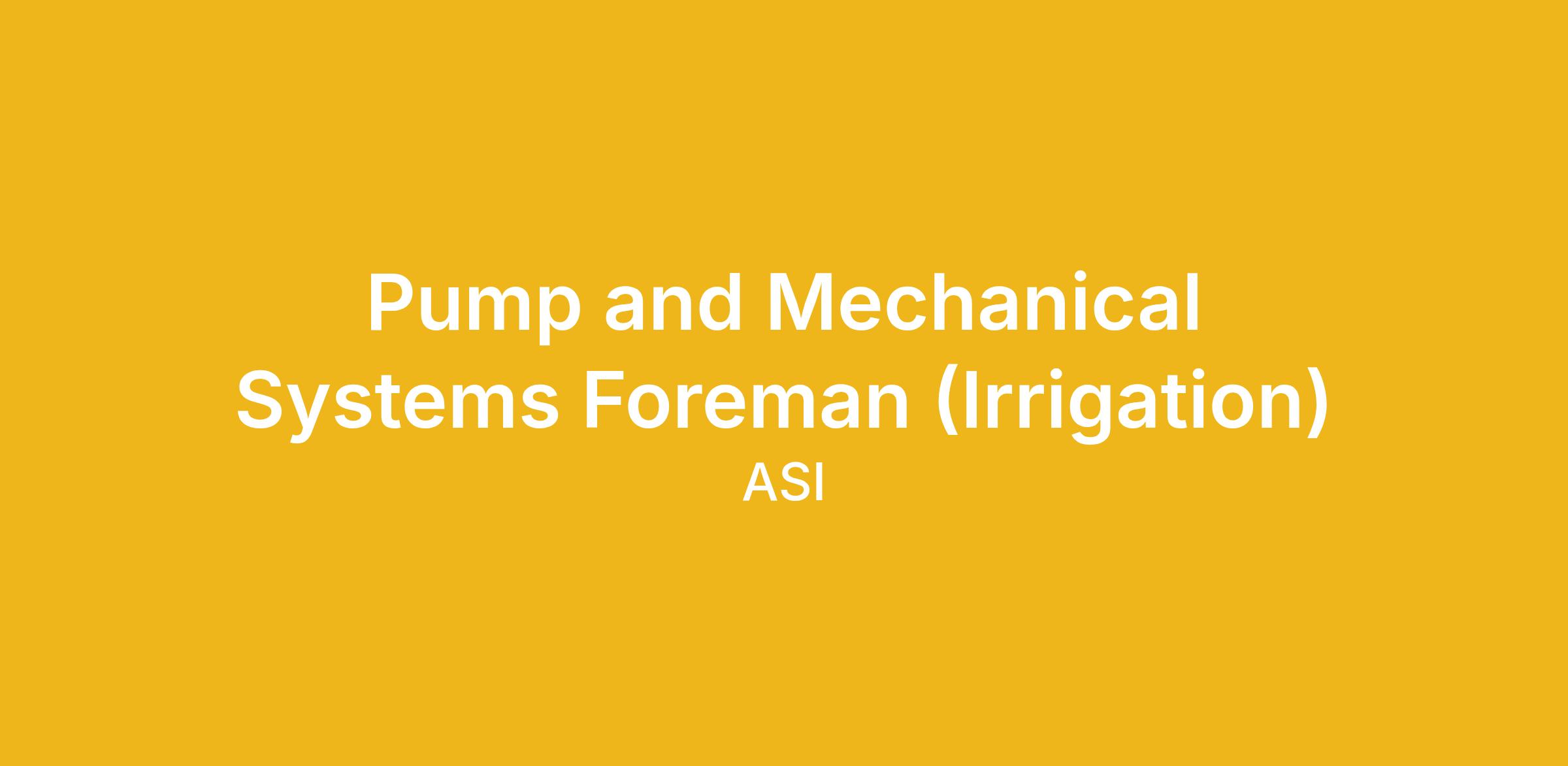 Position: Pump and Mechanical Systems Foreman (Irrigation)