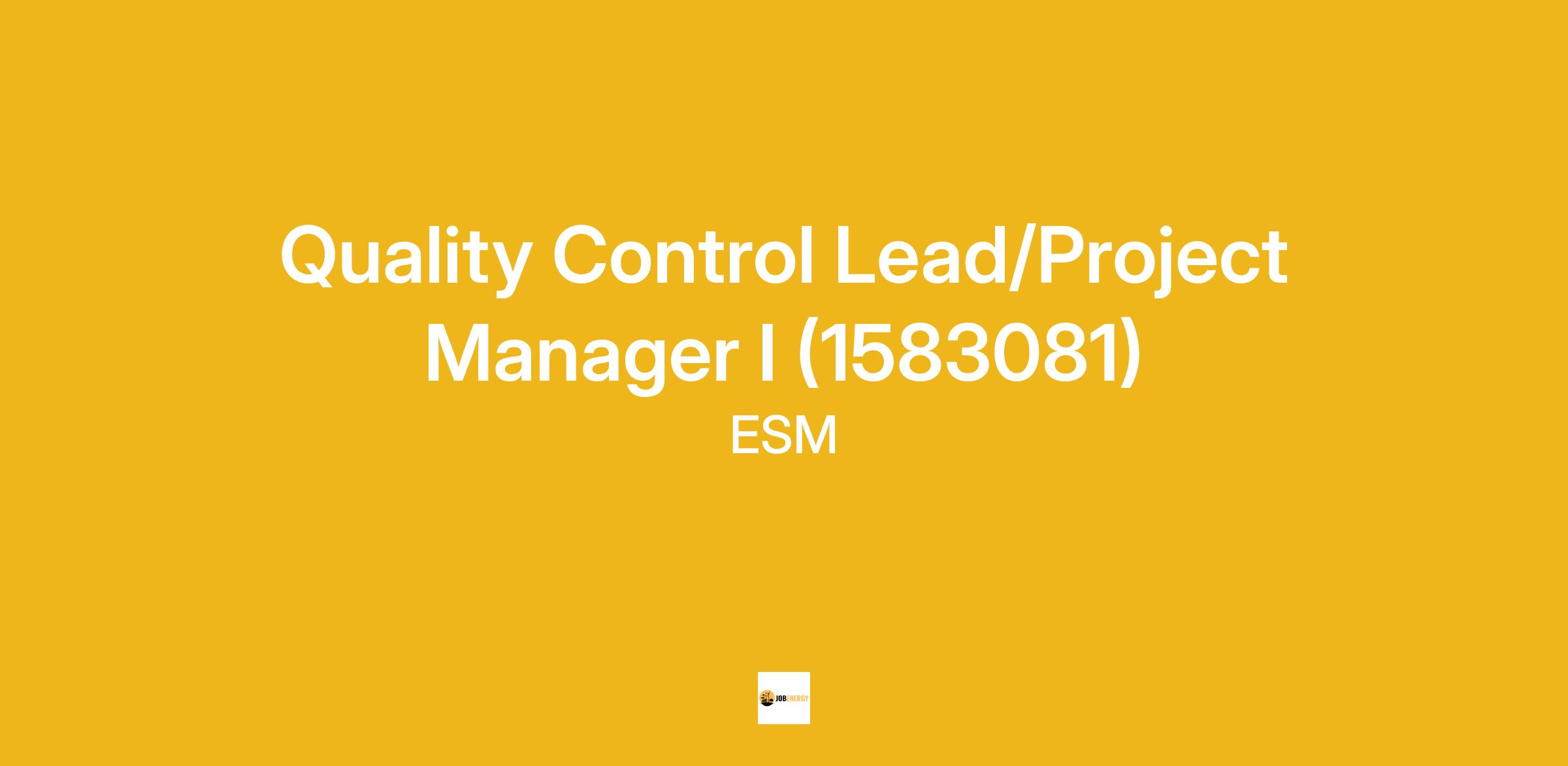 ESM is looking for a full-time Quality Control Lead/Project Manager I who demonstrates the following capabilities and satisfies the Minimum Qualifications, Clearance, and Certification requirements.
