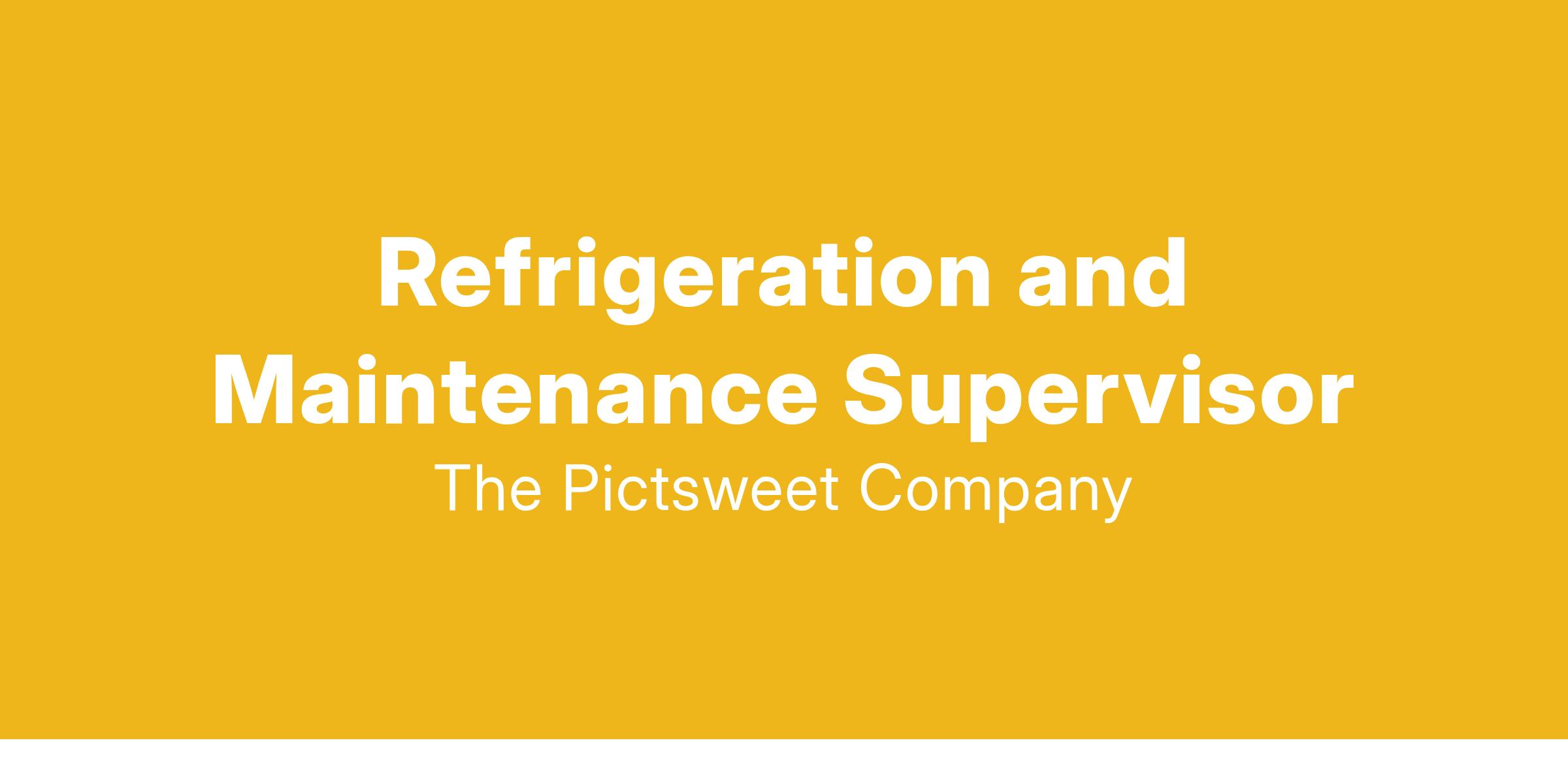The Pictsweet Company is growing! Family owned and operated for 75 years, Pictsweet is a frozen vegetable producer with agricultural roots. We are seeking a Supervisor of Refrigeration and Maintenance to join our vegetable processing facilitiy in Bridgeville, DE. The supervisor will be responsible for the safe and efficient operation and maintenance of the ammonia refrigeration system, production equipment, and boiler system.