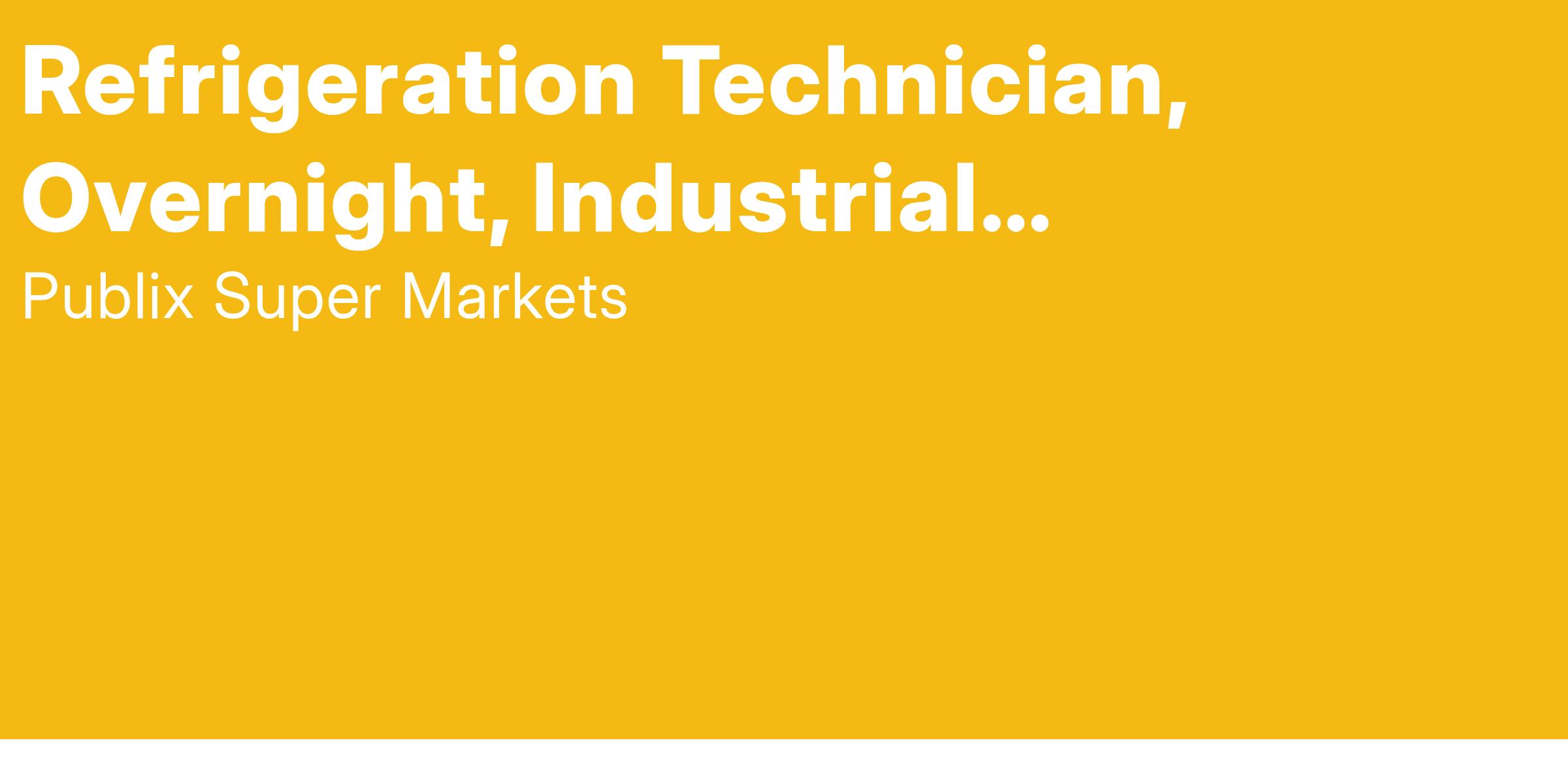 Join the Publix Industrial Refrigeration team as a Refrigeration Technician! You’ll help service ammonia refrigeration systems in our refrigerated warehouses and manufacturing facilities to maintain a climate-controlled environment and keep foods and beverages fresh. Refrigeration Technicians perform preventive maintenance that incorporates industry best practices. They also troubleshoot and repair mechanical and electrical equipment. Without our Refrigeration Technicians, Publix couldn't produce the volume and quality of products needed to serve our customers.