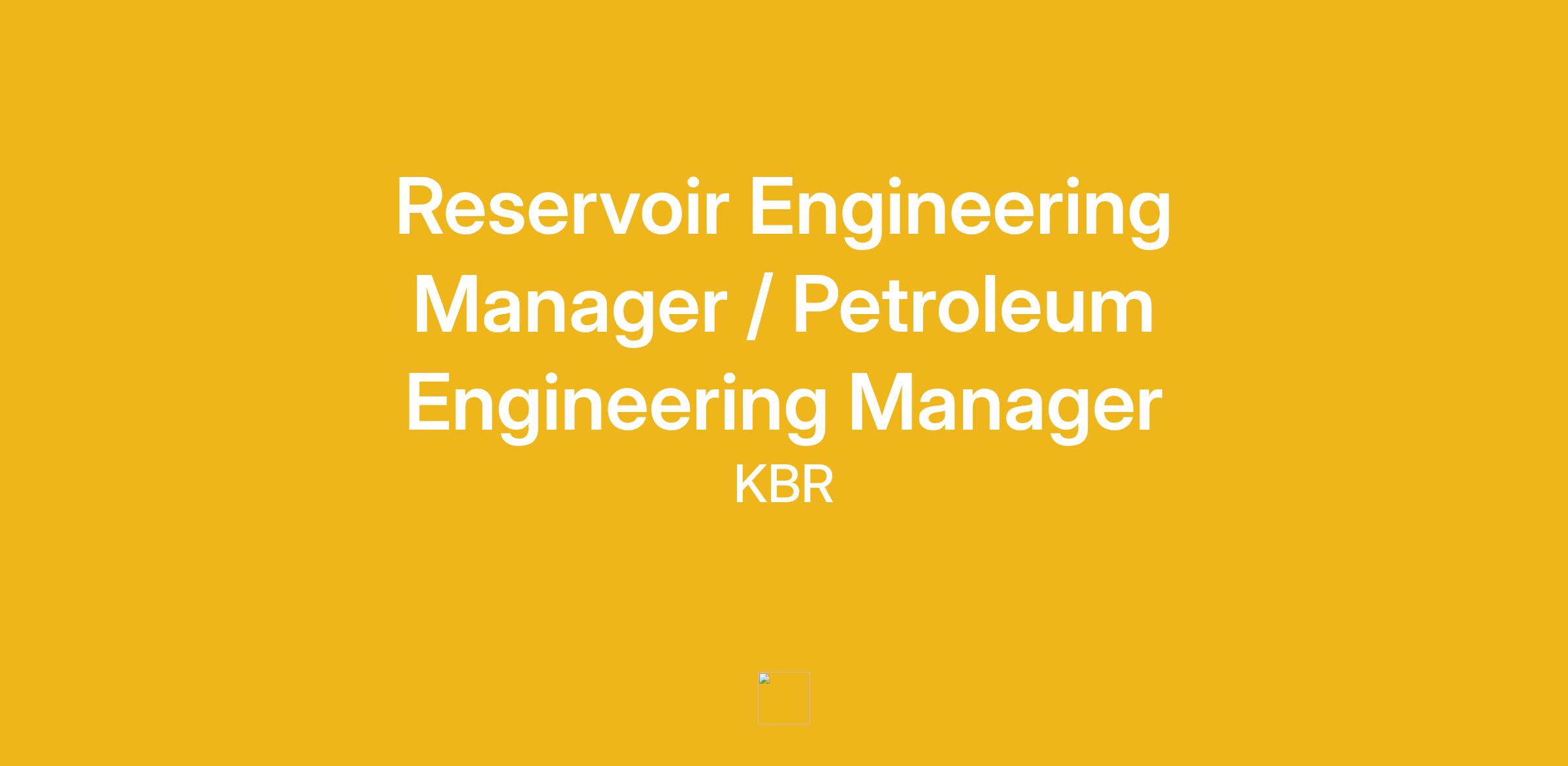 Reservoir Engineering Manager / Petroleum Engineering Manager