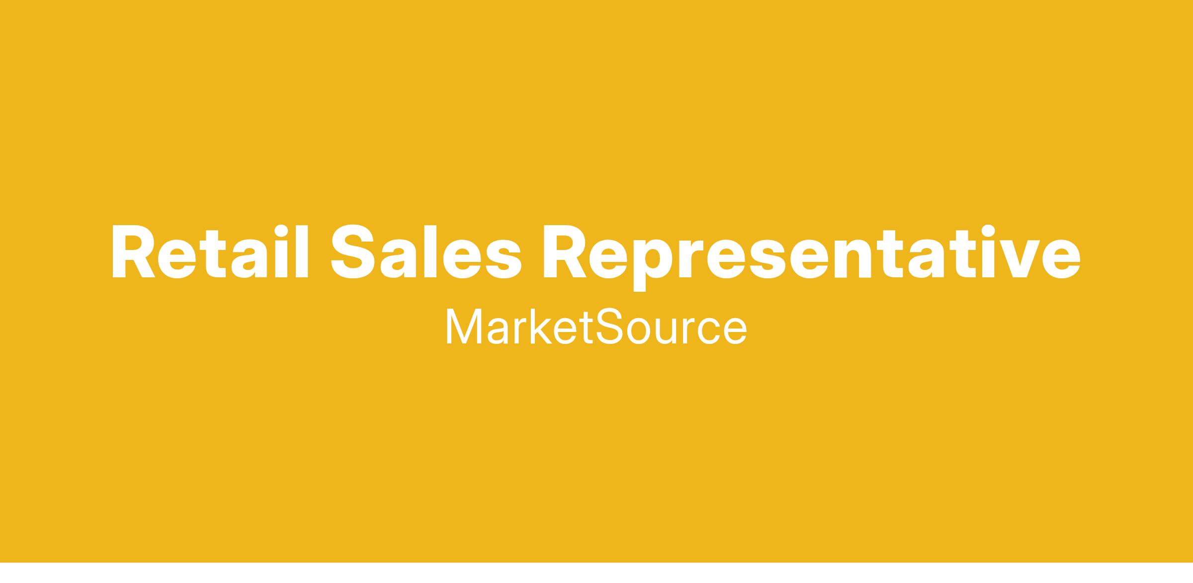 MarketSource is an equal opportunity employer. MarketSource is an Equal Opportunity Employer and will consider all applications without regards to race, sex, age, color, religion, national origin, veteran status, disability, sexual orientation, gender identity, genetic information or any characteristic protected by law.