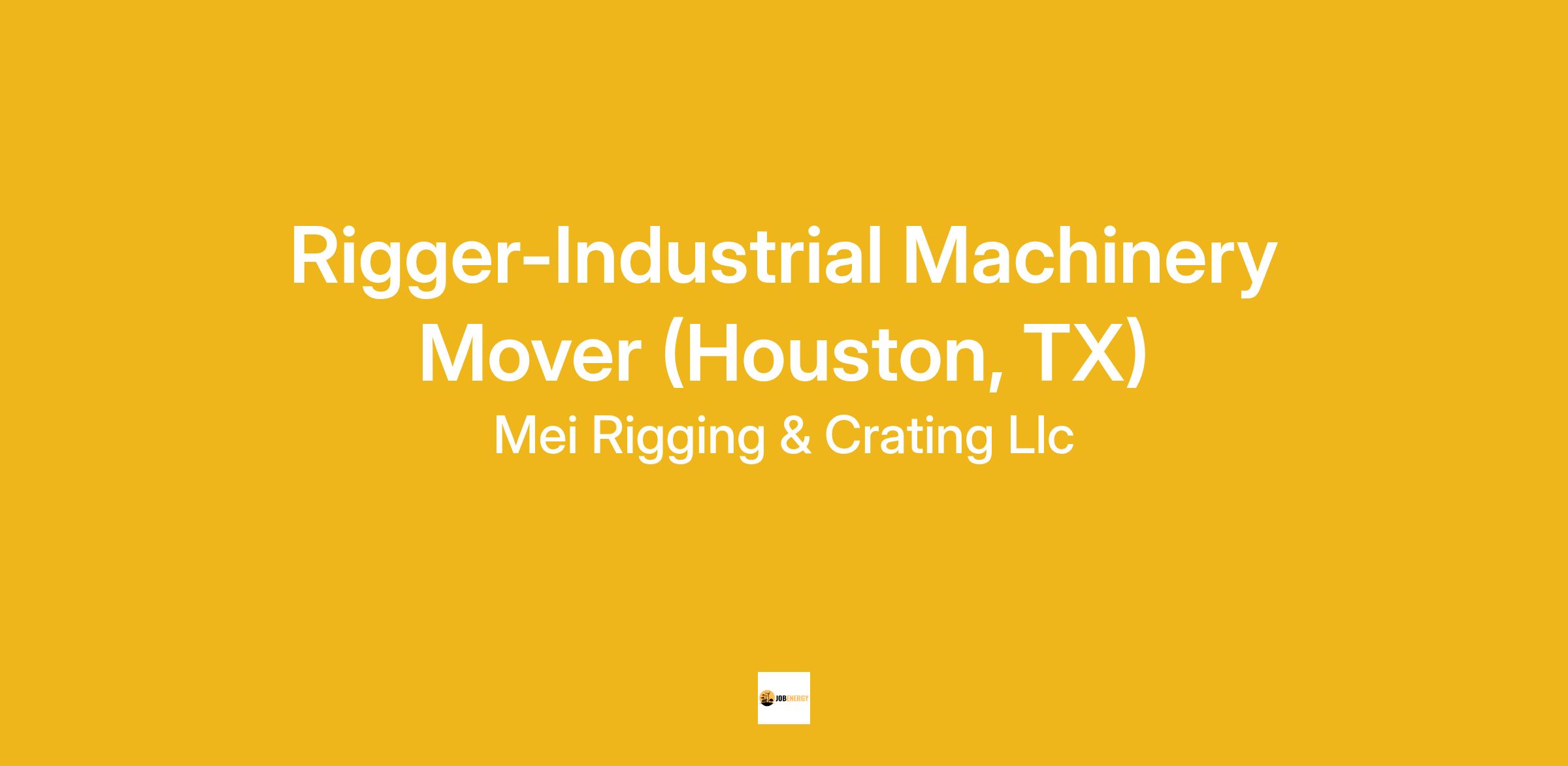 Set-up, assemble, or disassemble job-specific rigging that includes selecting proper gear and equipment based on the size, weight, dimensions, and area of movement that is necessary to safely secure machinery, tools, and equipment for relocation and/or transportation. Control, manipulate, fabricate, and repair rigging and support structures. Requires the use of hand, flag, and/or verbal signals to communicate to operators and others. Riggers may drive a commercial vehicle, perform maintenance or welding/fabrication functions, assist in warehouse activities, or perform other tasks as necessary when not rigging.