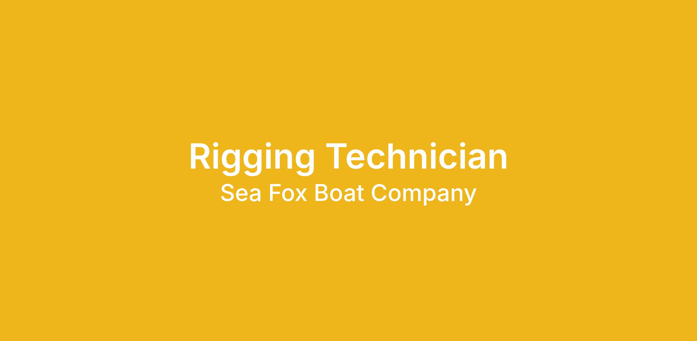 Rigging Technician Sea Fox Boat Company – Moncks Corner, SC Sea Fox Boat Company, a leader in high-quality offshore and family recreation boats, is seeking a skilled Rigging Technician to join our production team. This position plays a hands-on role in installing electronics, hardware, and other components that bring every Sea Fox vessel to life. If you take pride in craftsmanship and enjoy working in a collaborative, fast-paced environment, we’d love to hear from you.