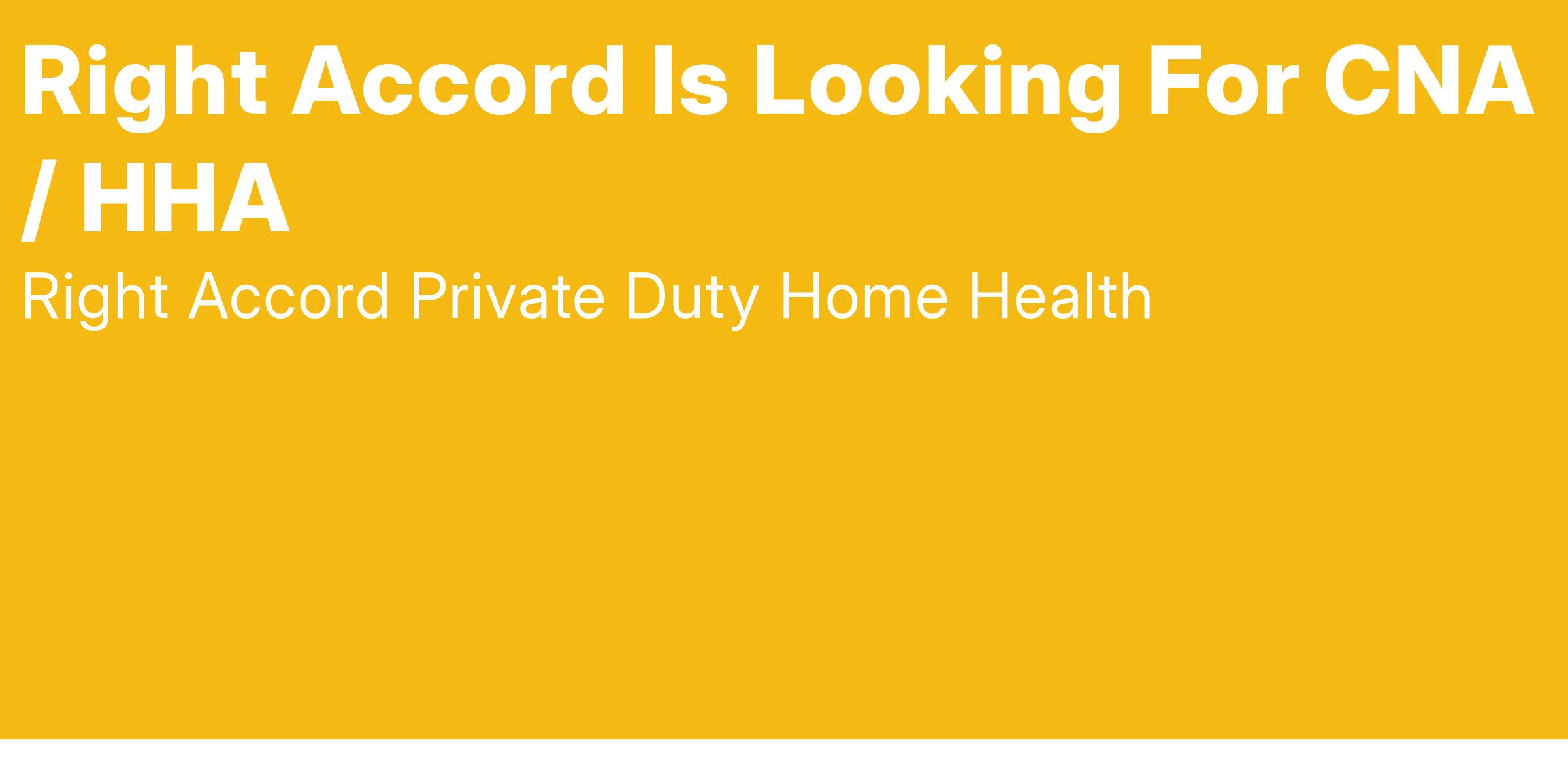 If you're a CNA or HHA with a passion for compassionate care, RIGHT ACCORD Private Duty Home Healthcare wants YOU on our team! We're looking for dedicated professionals who are ready to make a lasting impact in the lives of others - one home, one client, one day at a time.