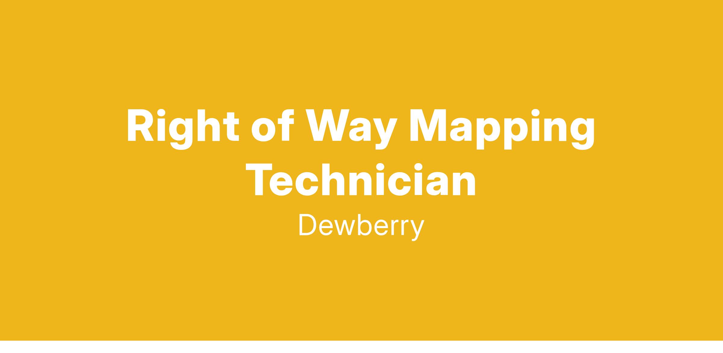 Dewberry is currently seeking a Right of Way Mapping Technician to join our Surveying and Mapping department in the Central Florida. The candidate must be able to work in a team environment as a member of a survey department, assisting in the performance of Right of Way Control Surveys, Right-of Way Maps, Sketches of Description and Boundary and Specific Purpose surveys. The position has opportunity for advancement for motivated individuals willing to learn the skills and technology required.