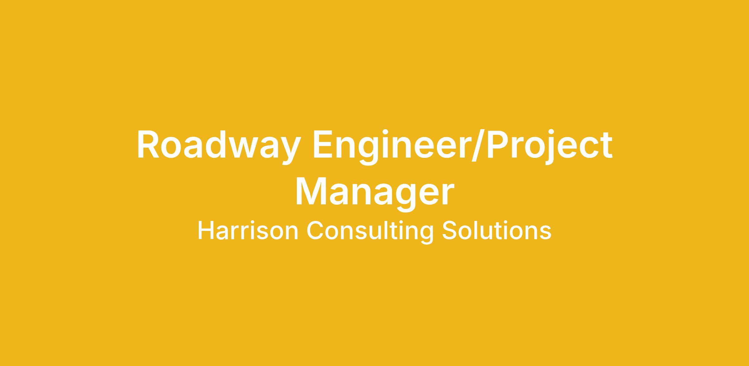 <\/html>"}}],"isMobile":false,"iframe":"true","jobType":"Full time","applyName":"Apply Now","zsoid":"37675481","FontFamily":"Verdana, Geneva, sans\-serif","jobOtherDetails":[{"fieldLabel":"Job Opening ID","uitype":111,"value":"47708"},{"fieldLabel":"Location","uitype":1,"value":"Columbus"},{"fieldLabel":"Industry","uitype":2,"value":"Consulting"},{"fieldLabel":"City","uitype":1,"value":"Columbus"},{"fieldLabel":"State\/Province","uitype":1,"value":"Ohio"},{"fieldLabel":"Zip\/Postal Code","uitype":1,"value":"43085"}],"headerName":"Roadway Engineer\/Project Manager","widgetId":"252097000000059050","isJobBoard":"false","userId":"252097000000736174","attachArr":[],"customTemplate":"3","isCandidateLoginEnabled":true,"jobId":"252097000024036800","FontSize":"12","googleIndexUrl":"https:\/\/harrisonconsultingsolutions.zohorecruit.com\/recruit\/ViewJob.na?digest=8DY.bVOboIBo7ZJhQVLAWMIVPyIBBn@K.B42ItgUrns\-&embedsource=Google","location":"Columbus","embedsource":"CareerSite","indeedCallBackUrl":"https:\/\/recruit.zoho.com\/recruit\/JBApplyAuth.do","logoId":"3cgkl37b76de065e24115963f6b2941ca7d80"}