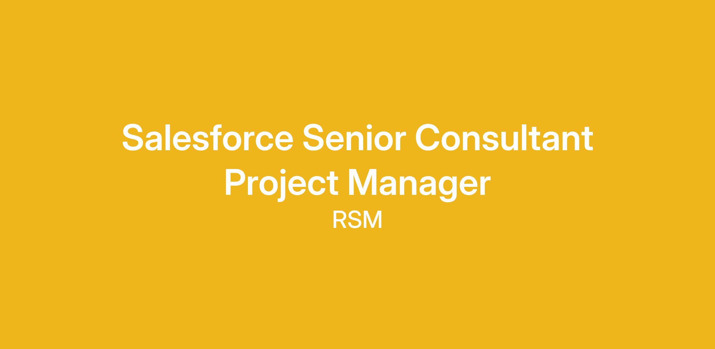 We are looking for a seasoned program/project management professional to join our Salesforce consulting team. You will be working with RSM consultants and clients utilizing your project management knowledge, expertise, and talent to provide project management oversight to small and large-scale Salesforce implementations. The project management oversight will enforce project timeline and budget adherence, resulting in increased client satisfaction, improved delivery and implementation practices and project profitability. Experience with CRM implementations and Salesforce specifically is an important element of this position.