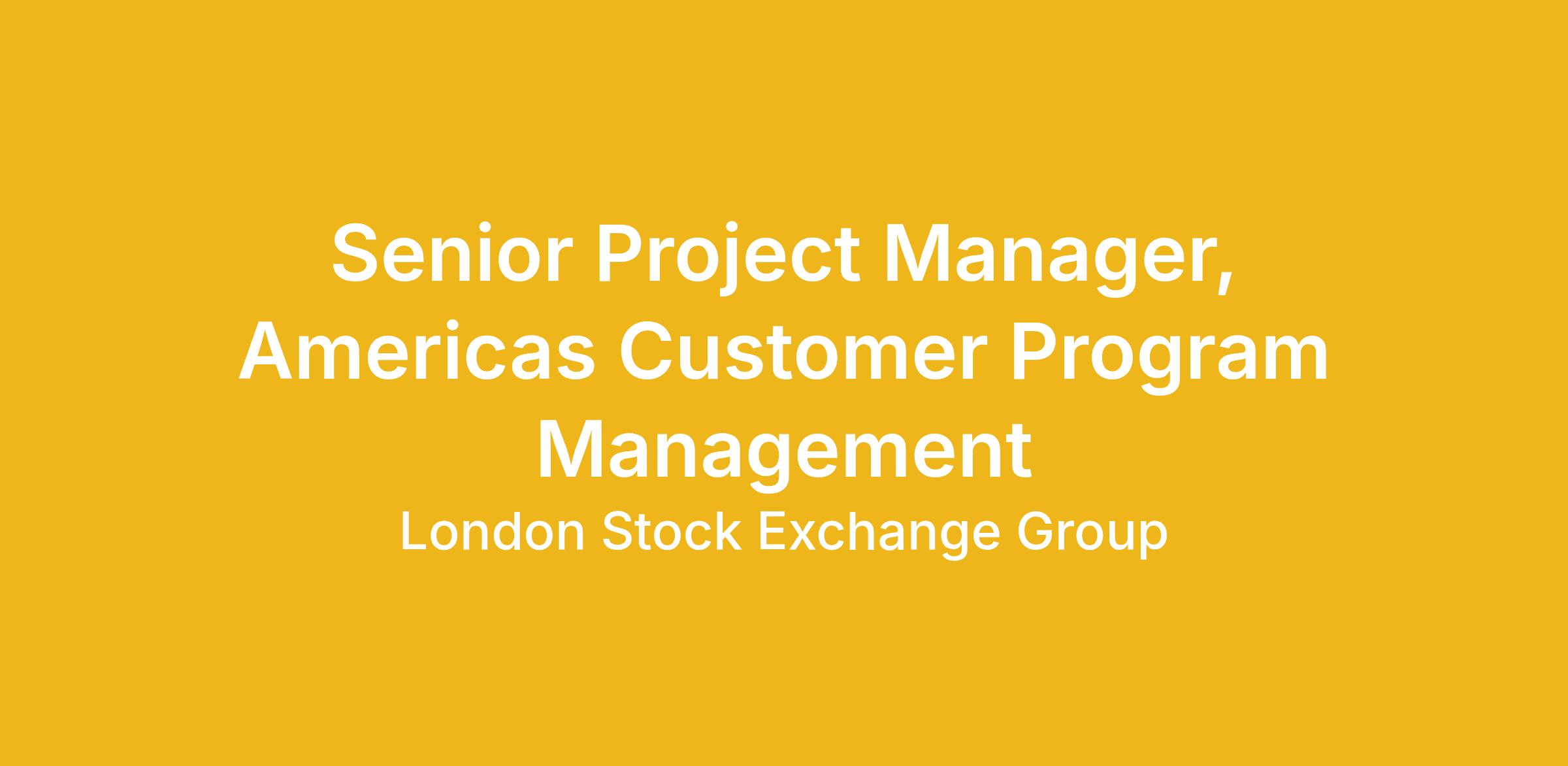 We have an exciting opportunity for an experienced Senior Project Manager to join the Americas Customer Program Management Team within our Implementation group. In this role, you will plan and complete key LSEG customer change projects, working across multiple business units and engaging with clients, internal collaborators, and project teams such as Technology, Customer Implementation, Sales & Account Management, and Product & Proposition.