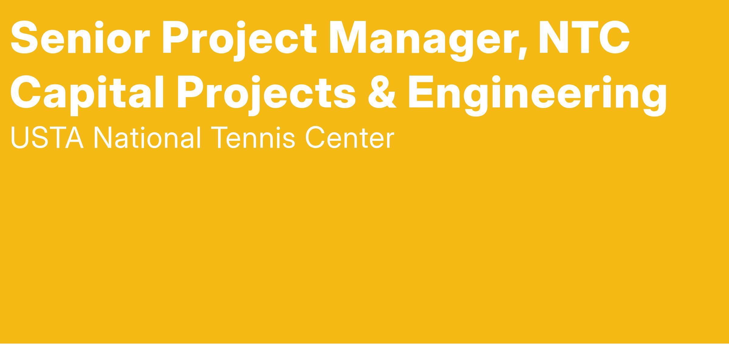 The Senior Project Manager will be responsible for initiating, budgeting, scheduling, overseeing and verifying completion of multidisciplinary construction projects throughout the USTA Billie Jean King National Tennis Center campus, ensuring the NTC remains a premier destination for tennis enthusiasts, fans and professionals.