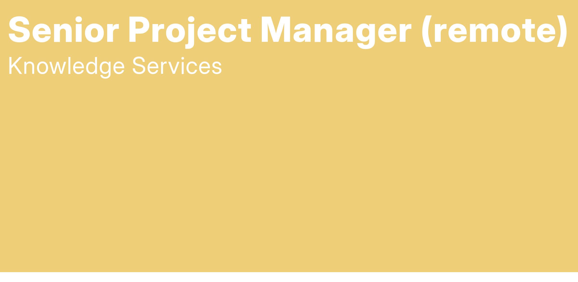 Knowledge Services is seeking a remote Project Manager for a multi-year project through June 2027 (potential for extension) in support of the State of North Dakota. Position may work 100% remotely.