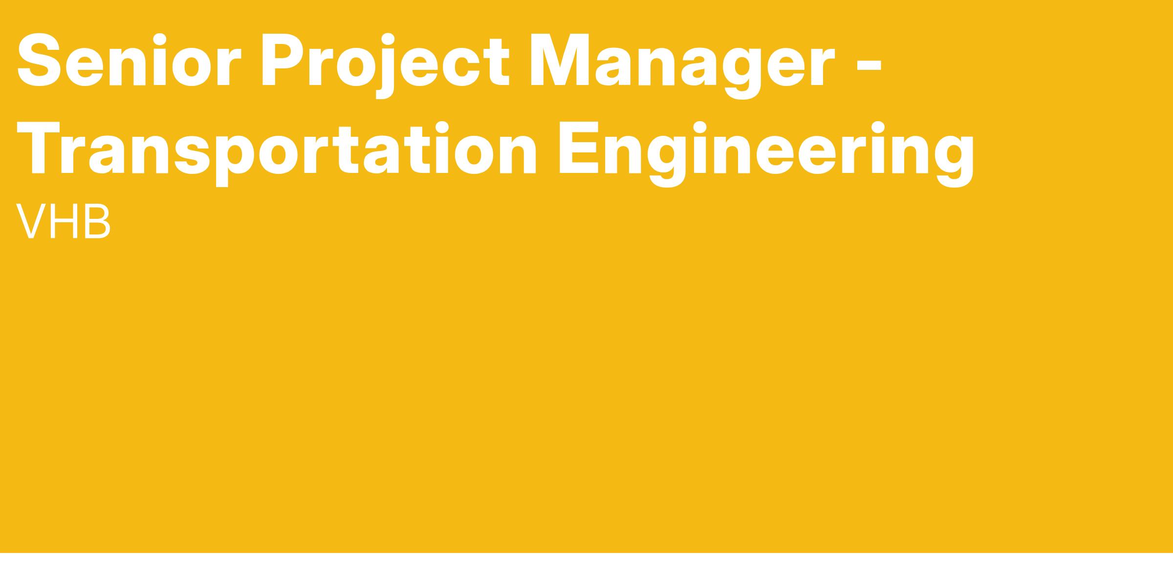 VHB’s Wethersfield, CT office is seeking a Senior Transportation Engineering Project Manager in the Transportation Department to join our growing team. VHB’s Transportation group has earned a reputation as one of the preeminent traffic engineering and transportation planning teams in Connecticut. This position provides an opportunity to lead complex transportation projects for major institutional, real estate, and governmental clients and play an important role in expanding and shaping the group. We are looking for someone with a blend of project management skills, technical expertise, managerial skills, and innovative thinking.