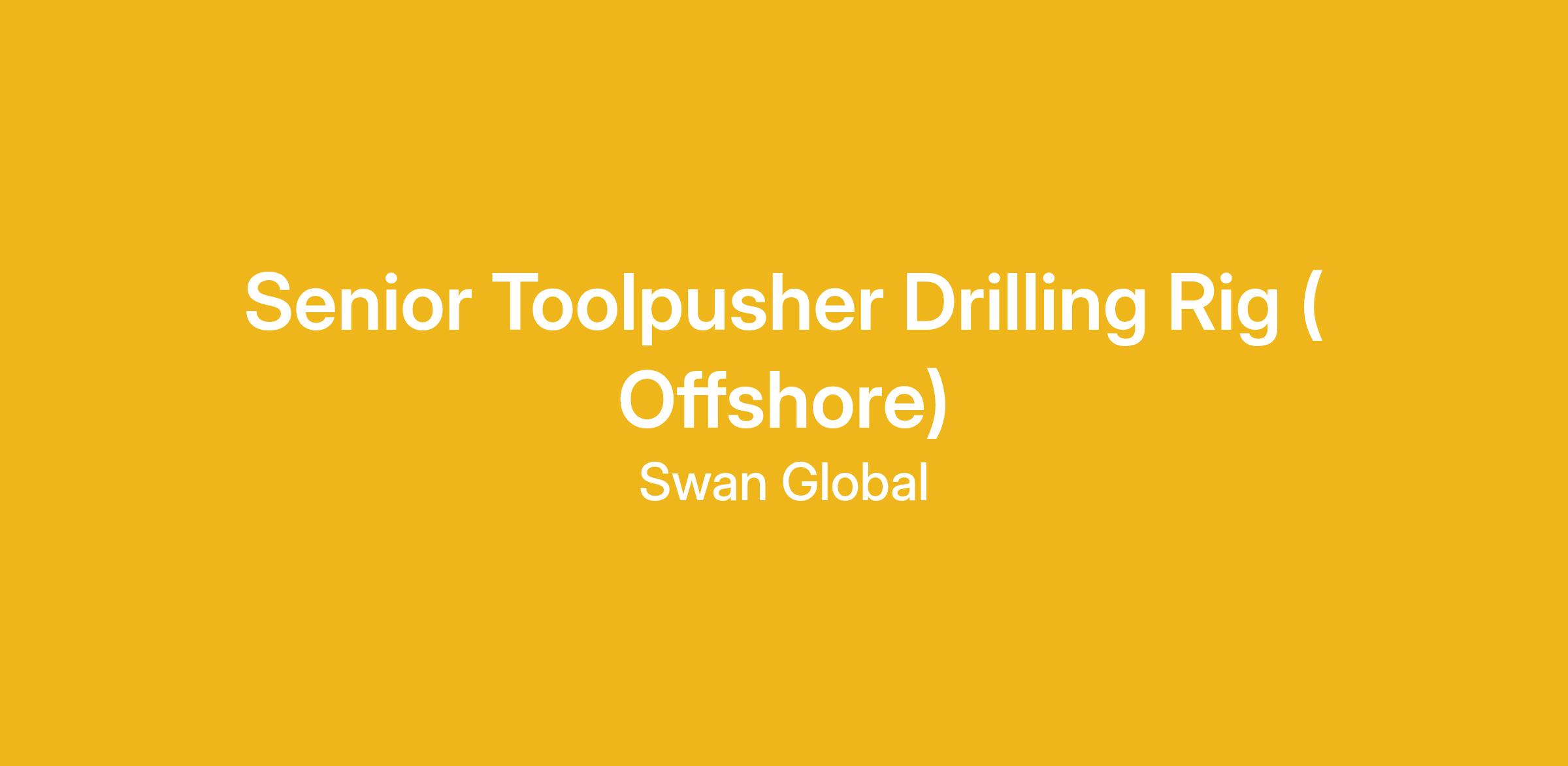 Senior Toolpusher Offshore Drilling Rig:
