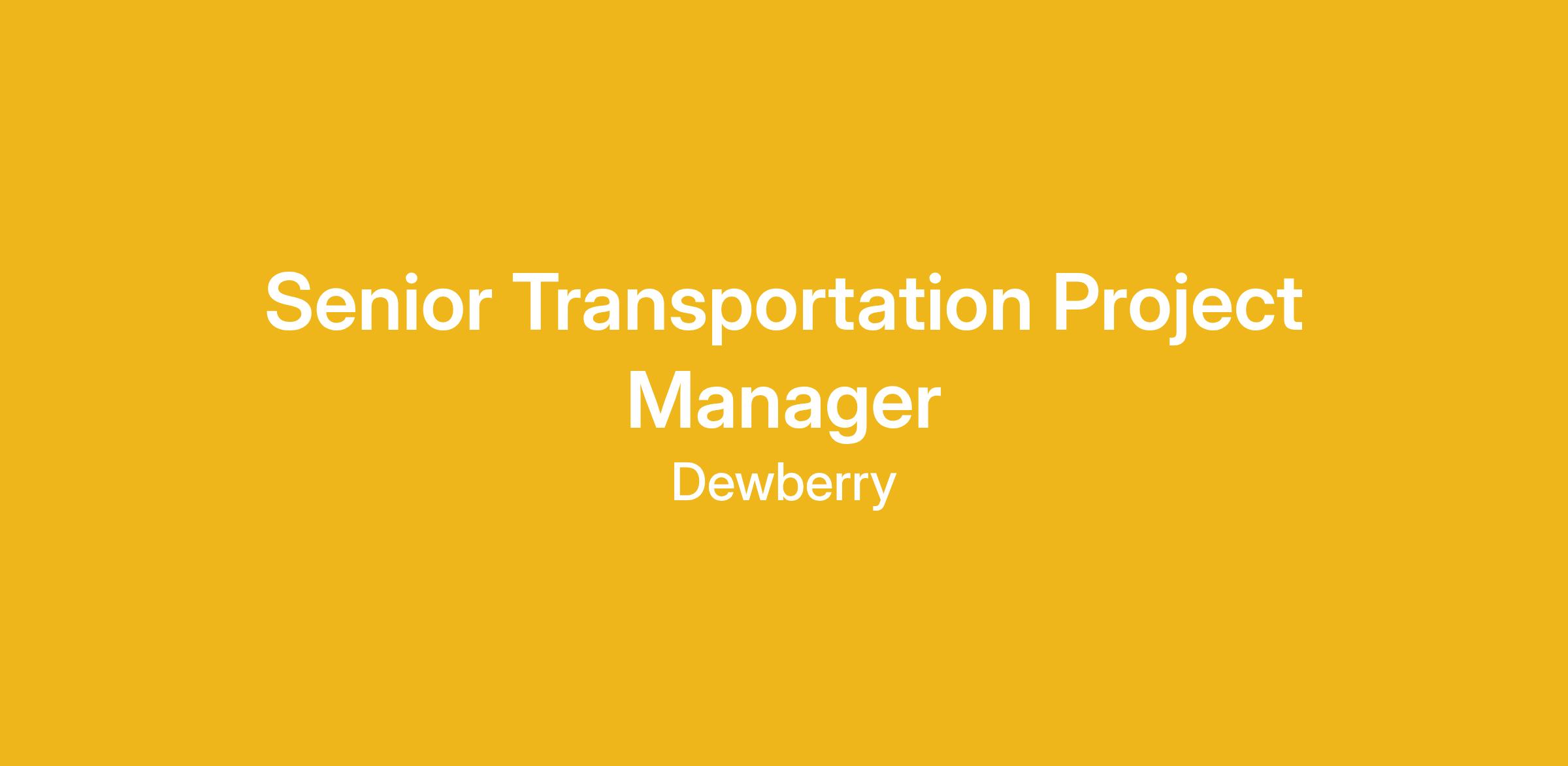 Dewberry is seeking a motivated, self-starter for our Charlotte, NC or Raleigh, NC office as a Senior Transportation Project Manager for our Roadway group. This is an excellent career opportunity to join a top ENR Transportation Design firm. We are seeking a candidate that will have the opportunity to grow and strengthen our transportation design practice in Raleigh, Charlotte and surrounding areas. The ideal candidate has prior transportation experience with municipal and State DOTs. Previous Project Management experience is required.