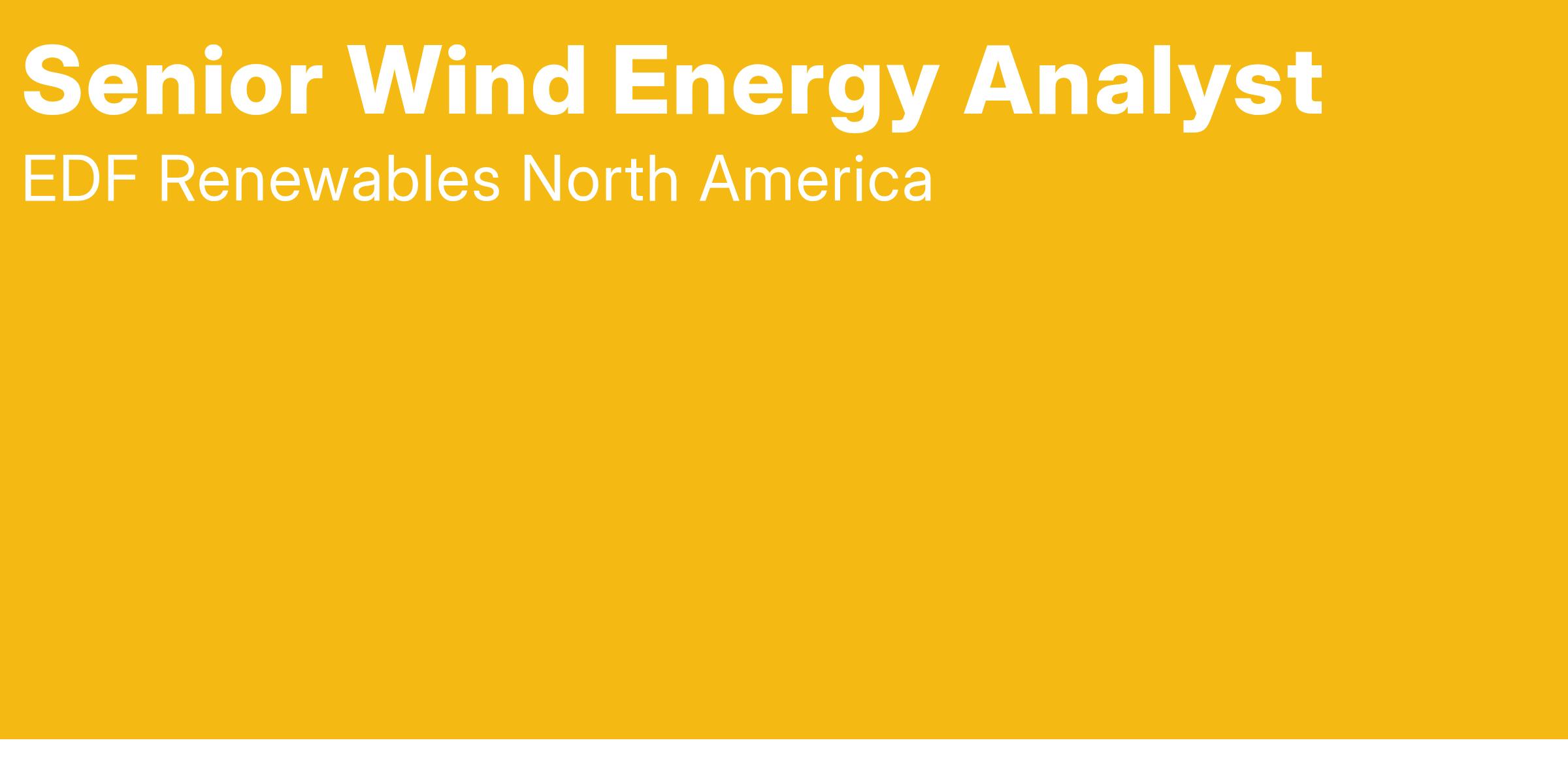 Scope of Job: The Senior Wind Energy Analyst is responsible for analyzing measured wind data and producing energy estimates for EDF Renewable Energy’s North American wind project portfolio. This may include both on and offshore wind farms. The employee will work in a collaborative, open, team of technical analysts and must possess the ability to work well with others in a fast-paced environment. In a senior analyst role, the employee will be expected to help define technical best-practices and train others in their use. The incumbent will be capable of independent decision making and project management. Strong communication skills are to disseminate results and perceived risks to senior management and non-technical audiences.