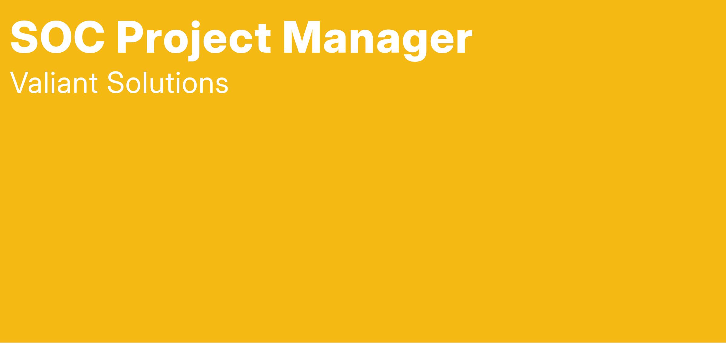 Valiant Solutions is seeking a Secret or Top Secret cleared SOC Project Manger in the Washington DC Metro area to join our rapidly growing and innovative cybersecurity team!