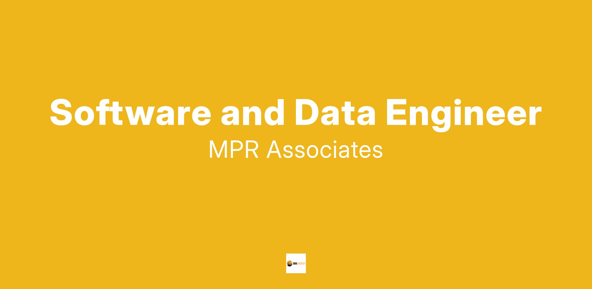 MPR Associates, Inc. (MPR), a thriving multi-discipline, specialty engineering services and consulting firm, is seeking a capable and motivated Software and Data Engineer for MPR’s Alexandria, VA office. If you are seeking a unique, challenging, and rewarding career opportunity, MPR may be the right company for you.