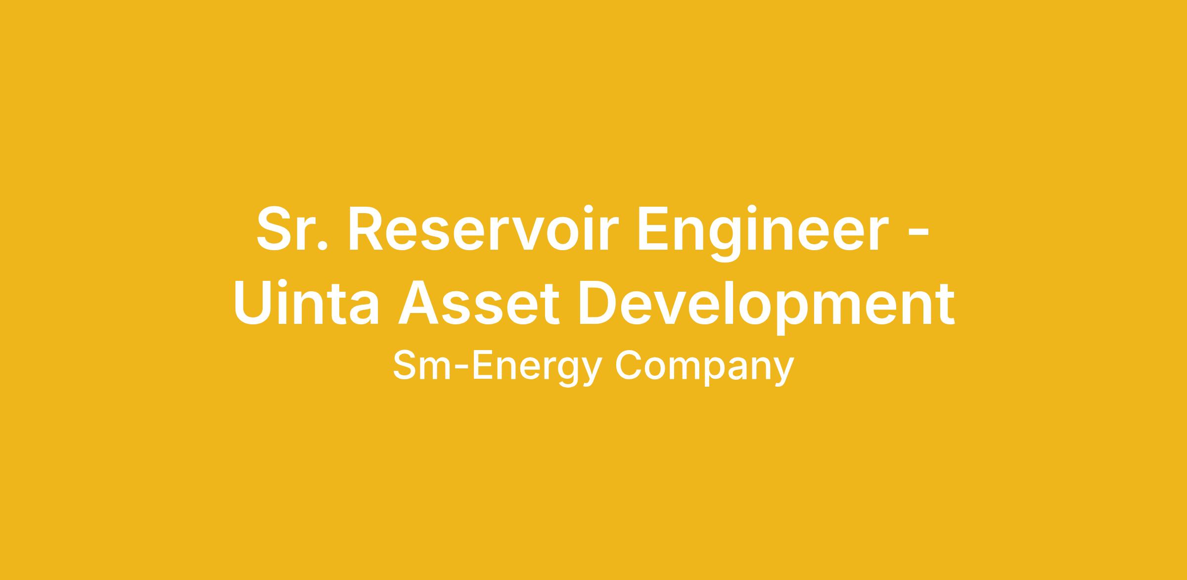 The Uinta Sr. Reservoir Engineer will be a member of the Uinta Basin development team located in Denver, CO. The Uinta Sr. Reservoir Engineer will assume a key role to optimize the development plans of the newly acquired Utah asset. The engineer will strive for continual improvement for the asset by providing detailed technical analysis, economic analysis and recommendations on development projects. This position operates under limited review while handling assignments of a broad scope and moderate difficulty.