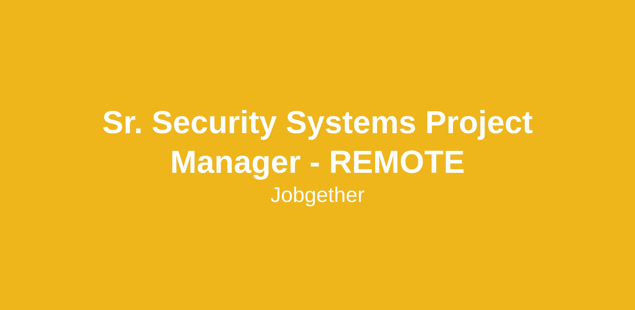 Sr. Security Systems Project Manager - REMOTE